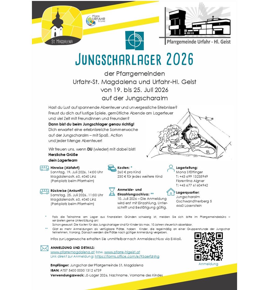 Anmeldung zum Jungscharlager der Pfarrgemeinden Urfahr-St.Magdalena und Urfahr-Hl.Geist