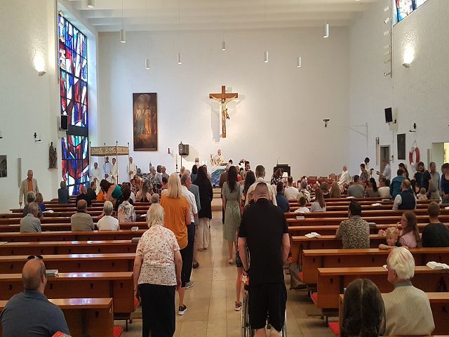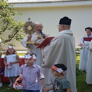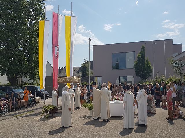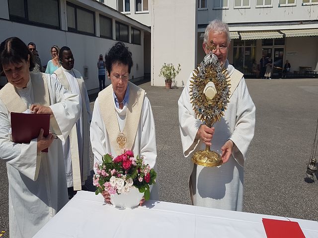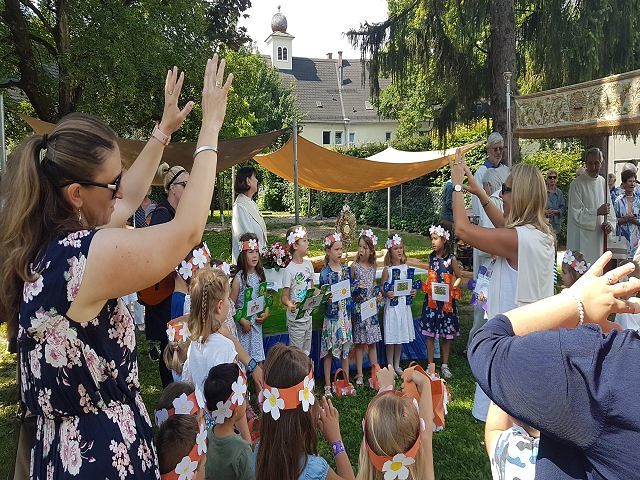 Die Schwesterpfarren St. Peter (Spallerhof) und Heiligste Dreifaltigkeit (Keferfeld-Oed) feierten gemeinsam mit den Kindern vom Pfarr-Kindergarten Keferfeld-Oed das Fronleichnamfest, das Fest des Leibes unseres Herrn Jesus Christus.