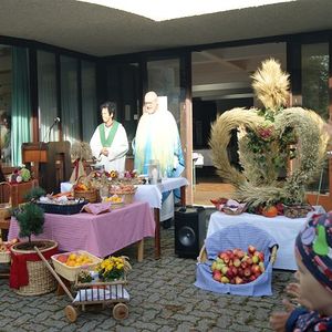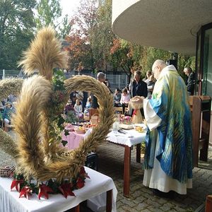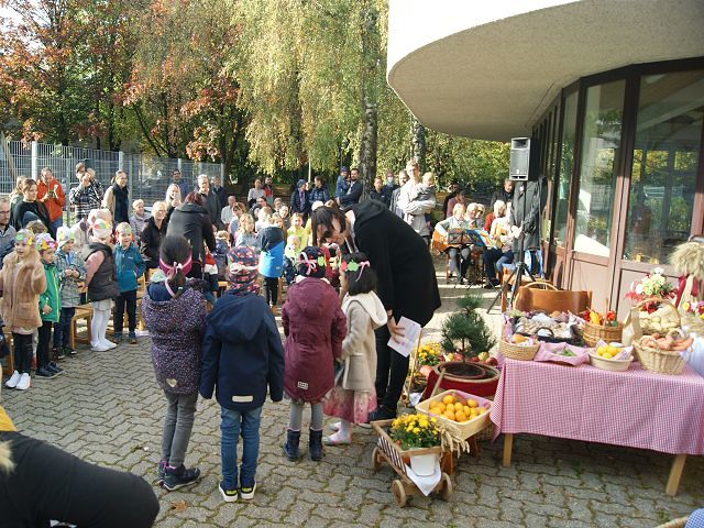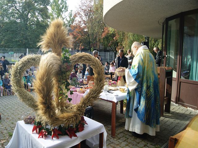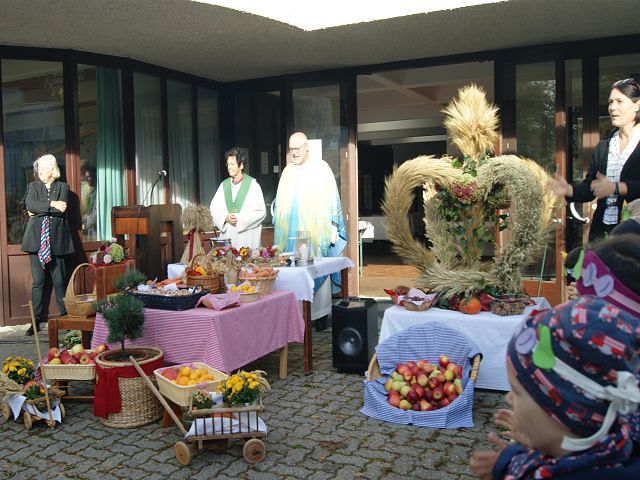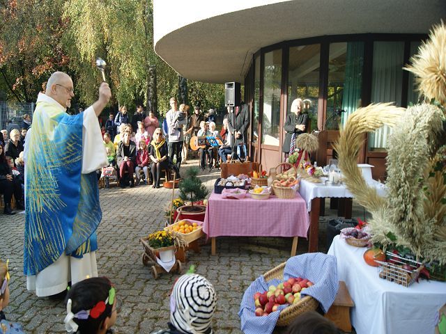 Mit den Kindern unseres Kindergartens und Pfarrer Franz Zeiger feierten wir das Erntedankfest.