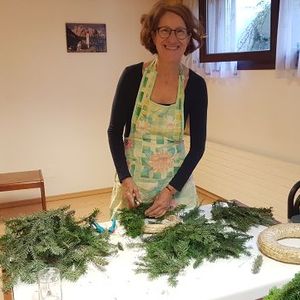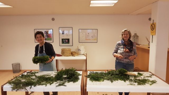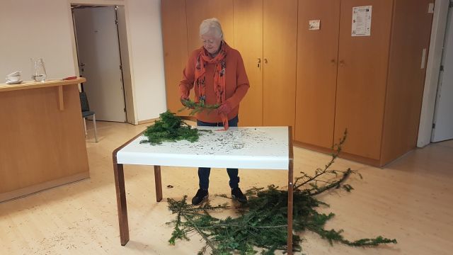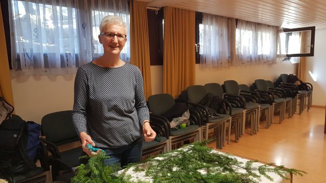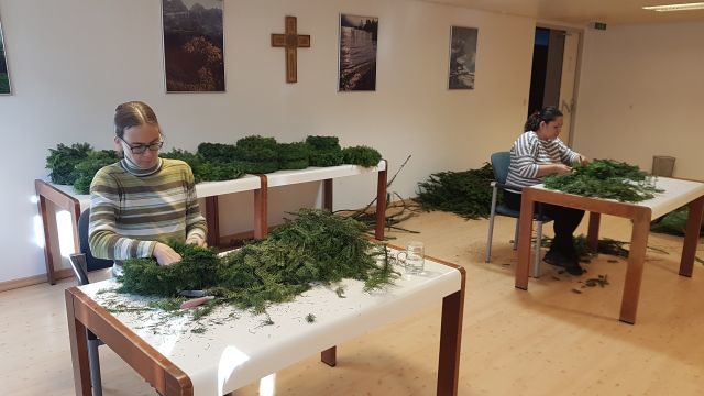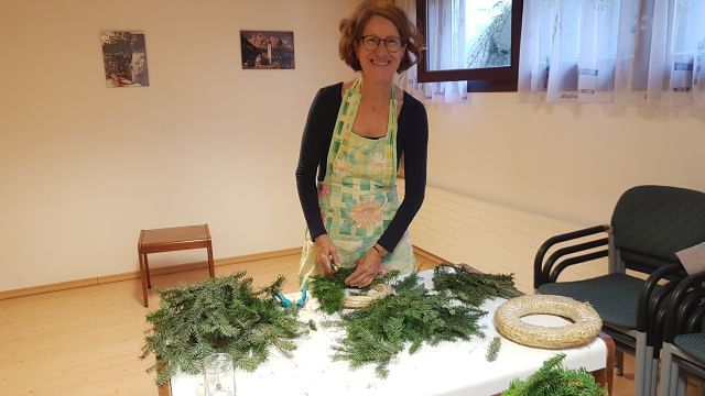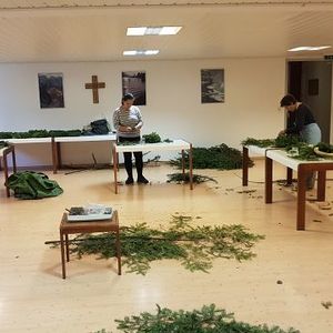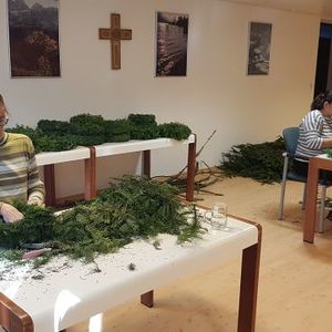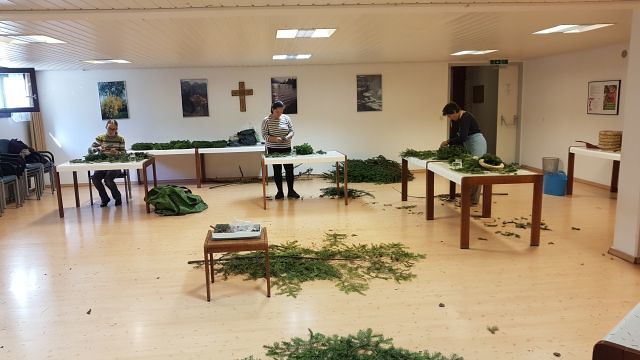 Die Adventzeit kommt bald. Fleißige Hände binden die Adventkränze die vielen Menschen in der Pfarre Freude bereiten.