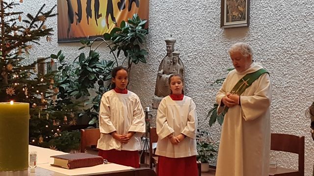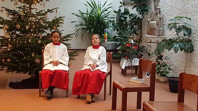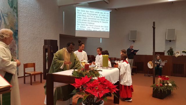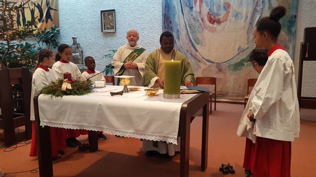 Unter Anleitung von Kaplan Michael Lubega lernten die fünf neuen Ministranten ( Matteo, Beni, Emma, Klara, Keridie ) die für sie im Rahmen der liturgischen Ordnung vorgesehenen Aufgaben bei der heiligen Messe, bei der Spendung mancher Sakramente und bei Andachten.