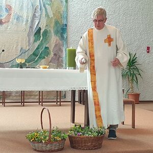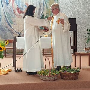 Auch bei uns wird diese Tradition hoch gehalten. Einige fleißige, ehrenamtliche Helferinnen haben die schönen Büschel zusammengebunden.