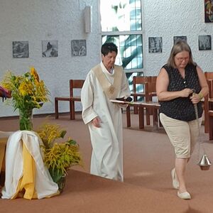 Zum Festtag Mariä-Himmelfart haben einige Frauen der Pfarre Kräuter-Blumenbüschel gebunden. Diese wurden während der Wortgottesfeier geweiht und anschließend verteilt.