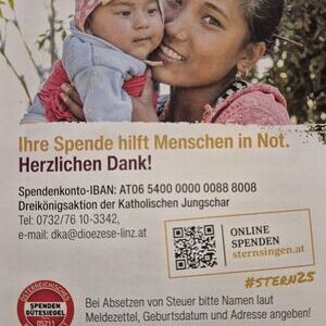 Auch heuer wieder stehen die SternsingerInnen unserer Pfarre bei Wind und Wetter draußen, um für die Dreikönigsaktion der Katholischen Jungschar zu sammeln.