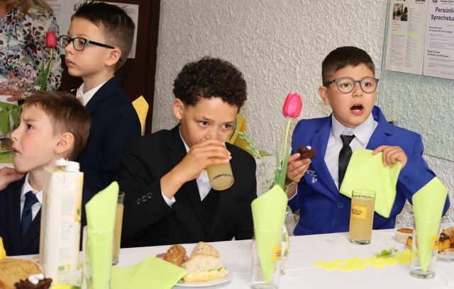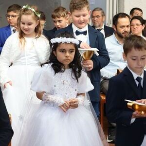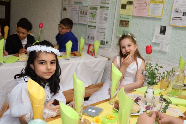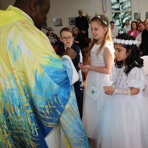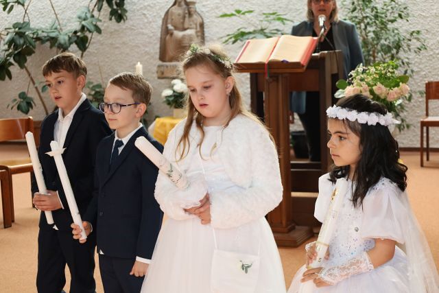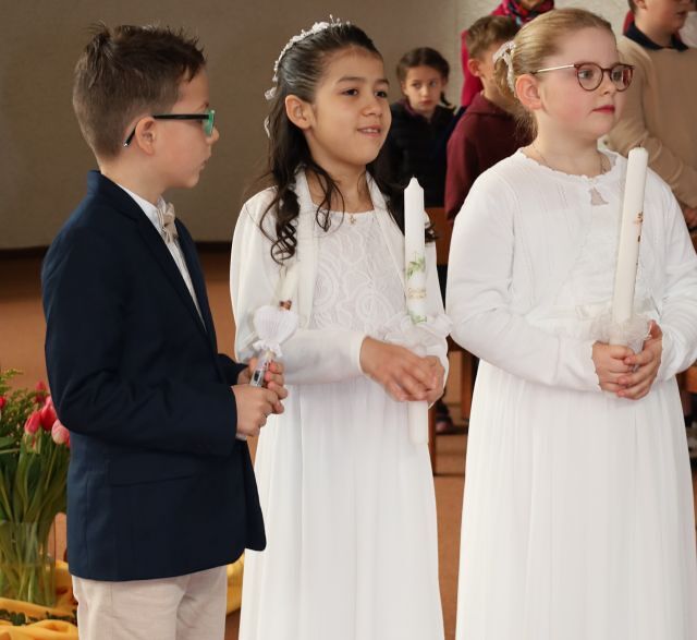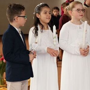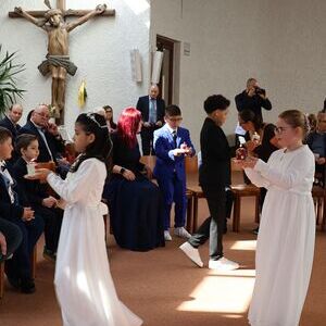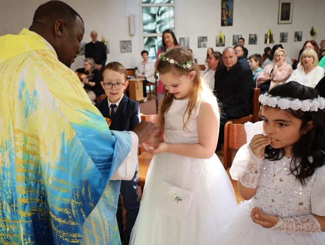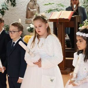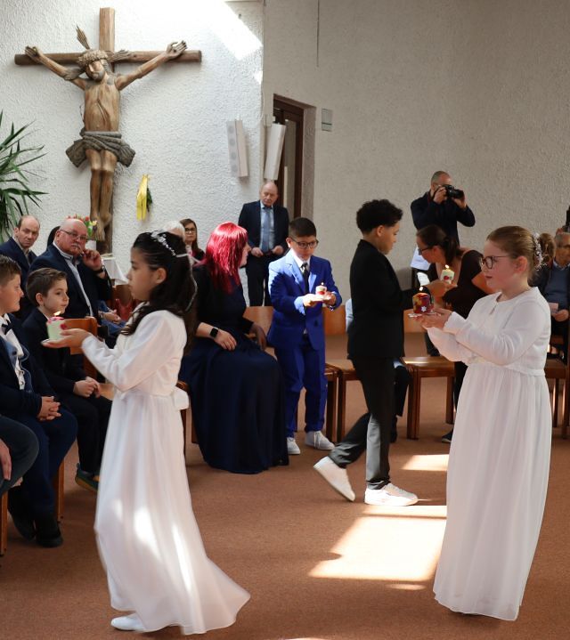 Heute ist für 12 Kinder unserer Pfarre ein sehr aufregender Tag. Sie bekommen zum ersten Mal in ihrem Leben die Heilige Kommunion. Ein sehr schönes Sakrament. Aufregend in den Vorbereitungen, aufregend auch wegen der schönen Kleidung, aufregend, wie die Hostie denn wohl schmecken wird?