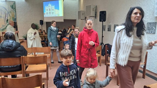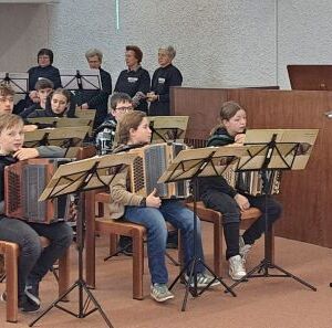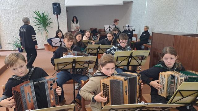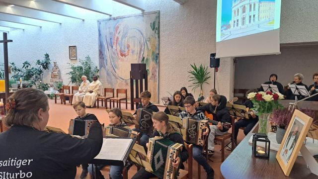 Heute hatten wir das große Glück, dass Pfarrprovisor Michael Lubega die Musikgruppe "Vielsaitiger MUSIturbo" aus Pabneukirchen kennt und diese für uns "aufspielte", die Messe würdevoll mit Zieharmonika, Gitarre und Gesang begleitete.