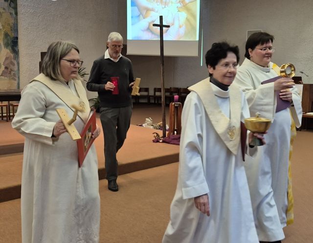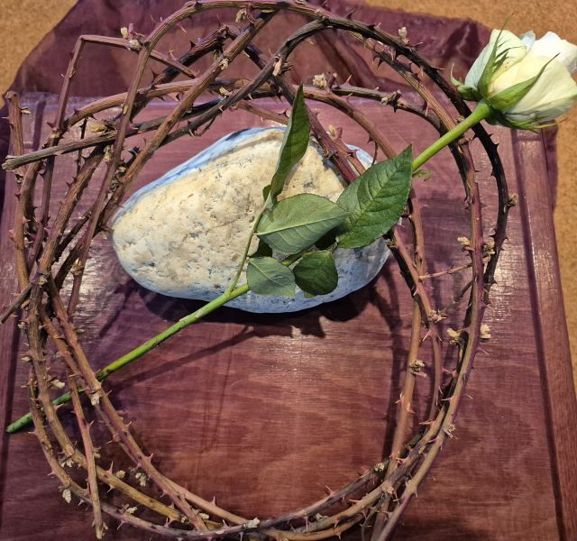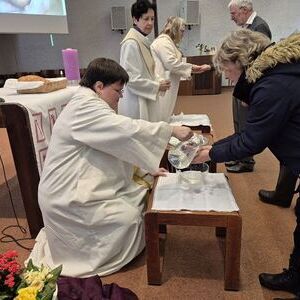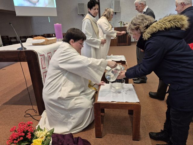 Händewaschung, Eincremen mit Balsam, dazu Segenswünsche. Eine schöne, wohltuende Zeremonie. Nach dem letzten Abendmahl wird der Blumenschmuck, die Kerze, das Tischtuch abgeräumt.