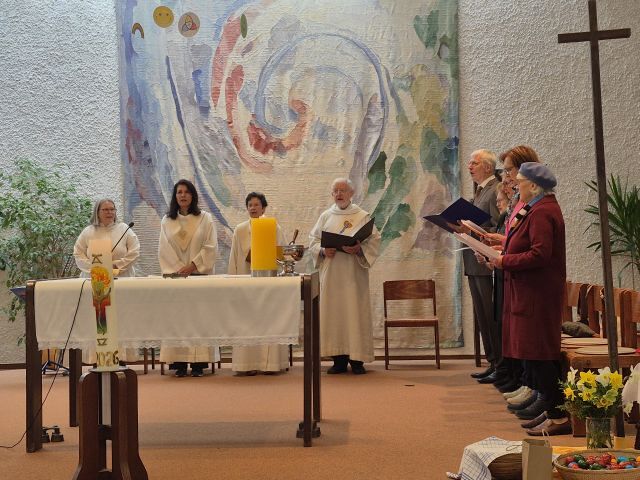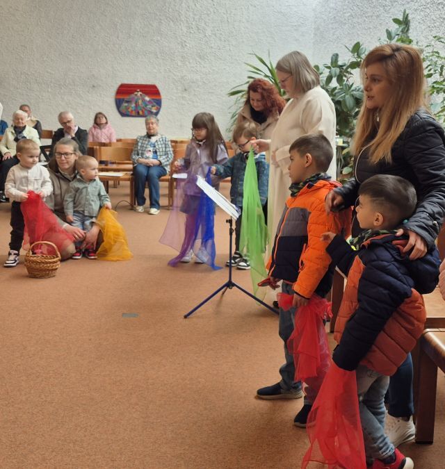 Feierliche Wort-Gottes-Feier. Im Anschluss daran konnten die Kinder nach Herzenslust im Garten des Pfarrkindergartens herumtollen, Ostereier suchen.