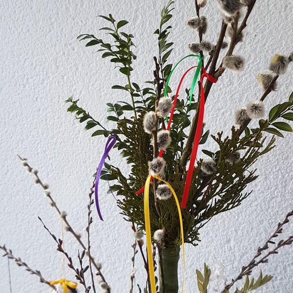Palmbuschenbinden Eine kleine, feine Damenrunde bindet und schmückt die Palmbuschen. Übere weitere helfende Hände würden sich alle freuen. zu den Bildern: Palmbuschenbinden