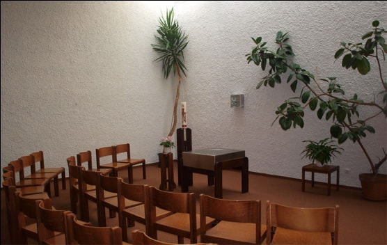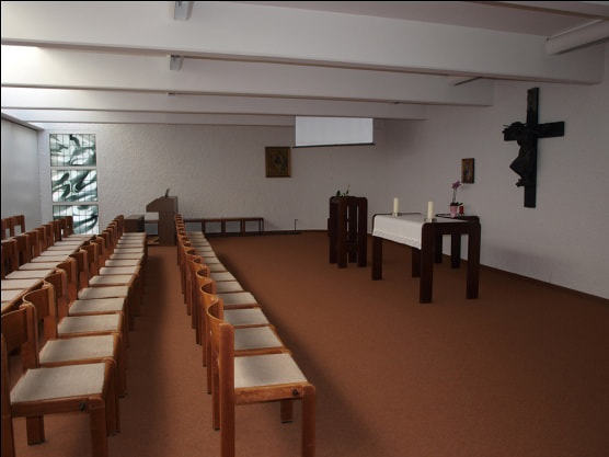 Die Kapelle bietet ca. 50 Personen Platz. In ihr werden vor allem die Wochentags-messen und kleinere Feiern abgehalten. Durch eine Holzschiebetür stellt sie auch eine Erweiterung für die Hauptkirche dar.