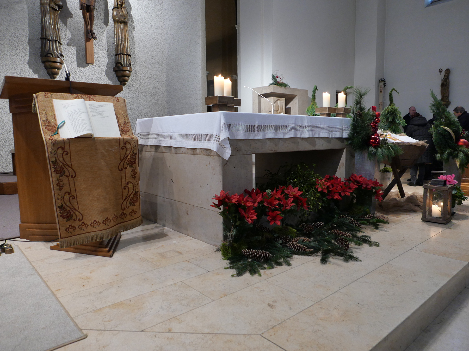 Weihnachtlich geschmückte Kirche in Kleinmünchen