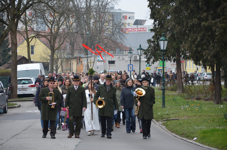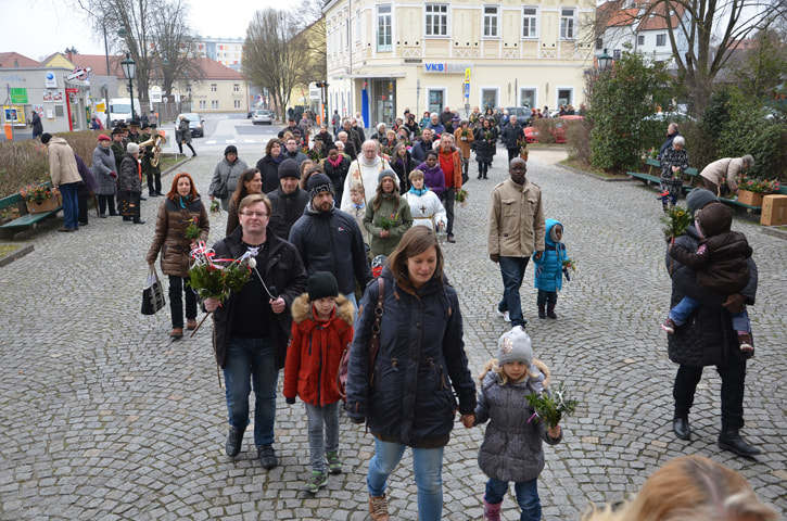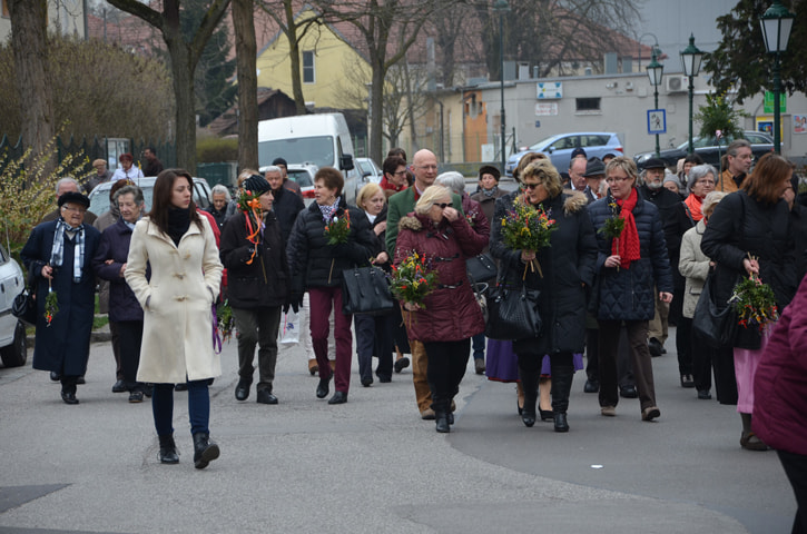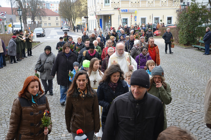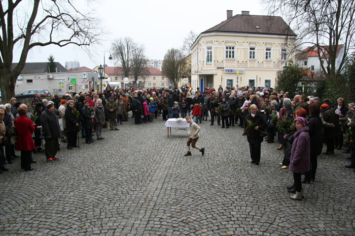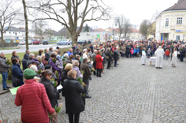 Viele Gläubige besuchten die Palmweihe der Pfarre St, Quirinus. Mehr als 1500 Palmbuschen wurden von Pfarrer Franz Kastberger gesegnet, die von den Frauen der Pfarre in liebevoller Weise gebunden wurden.