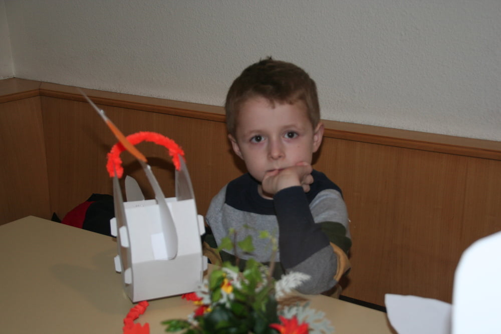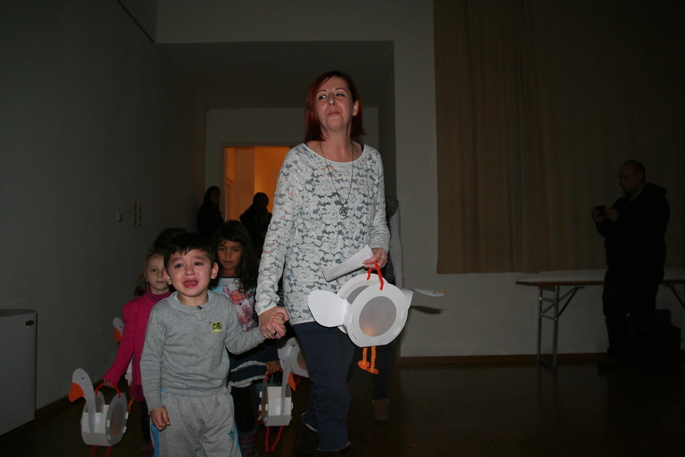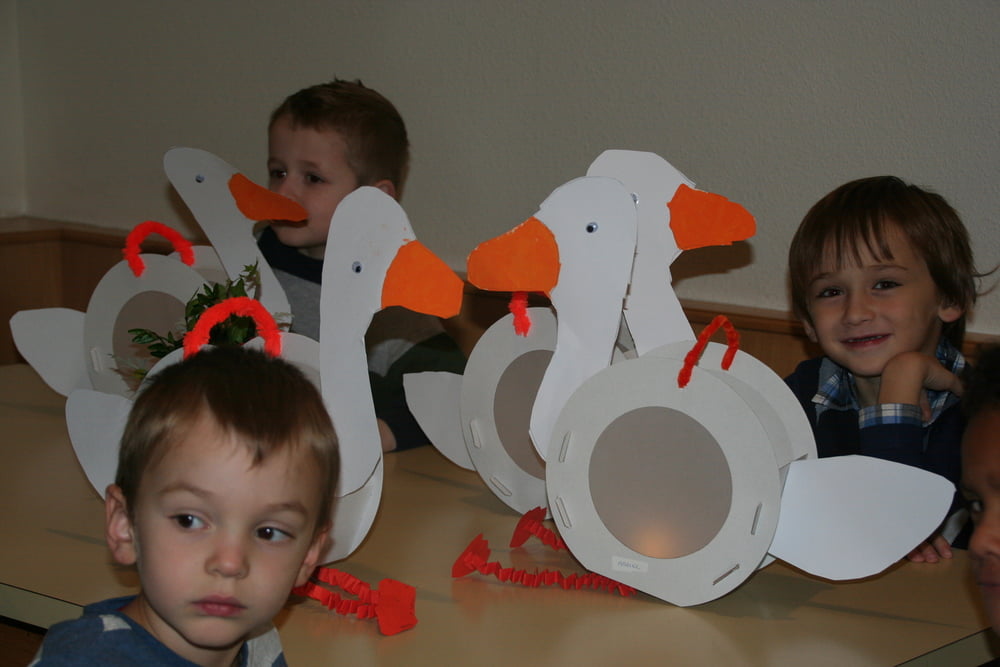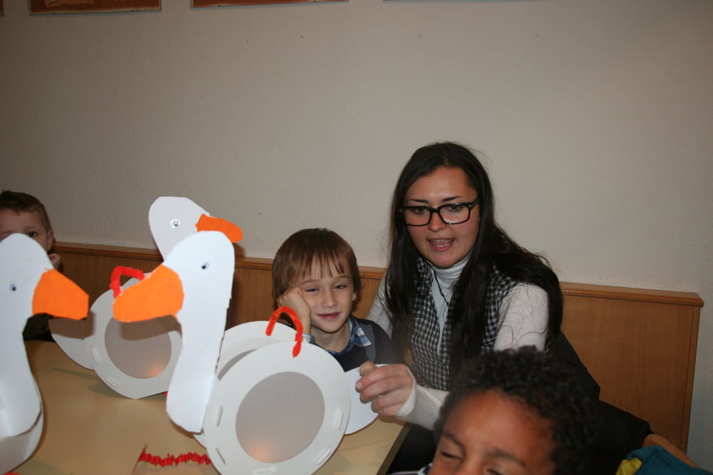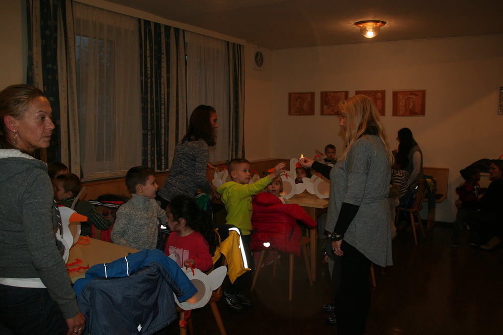 Mit selbstgebastelten Laternen ziehen sie im Pfarrsaal ein, singen Lieder, beten, musizieren und teilen zum Abschluß das Martinskipferl.