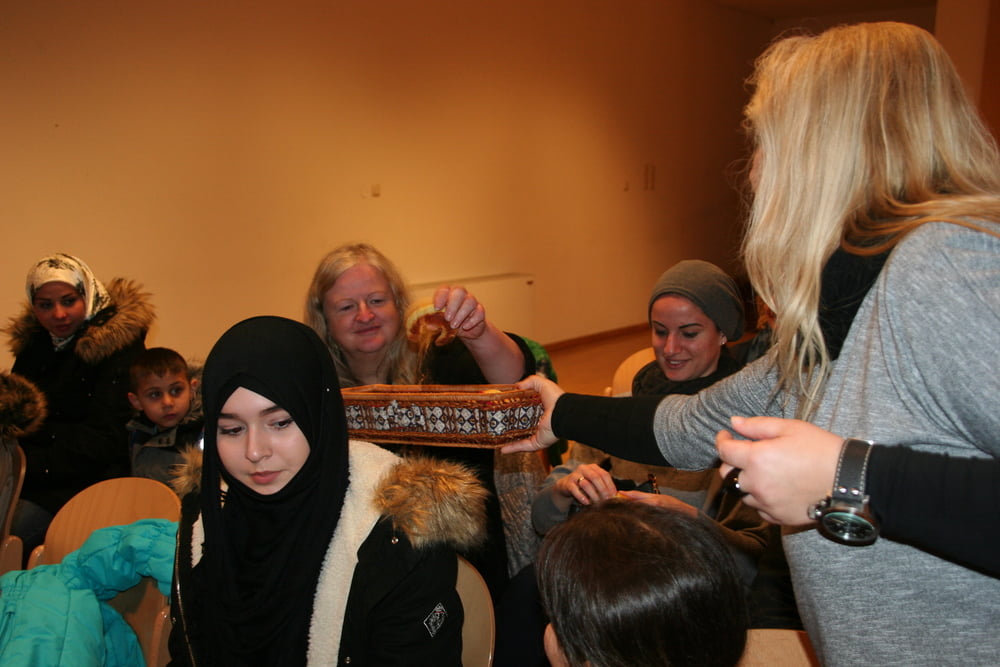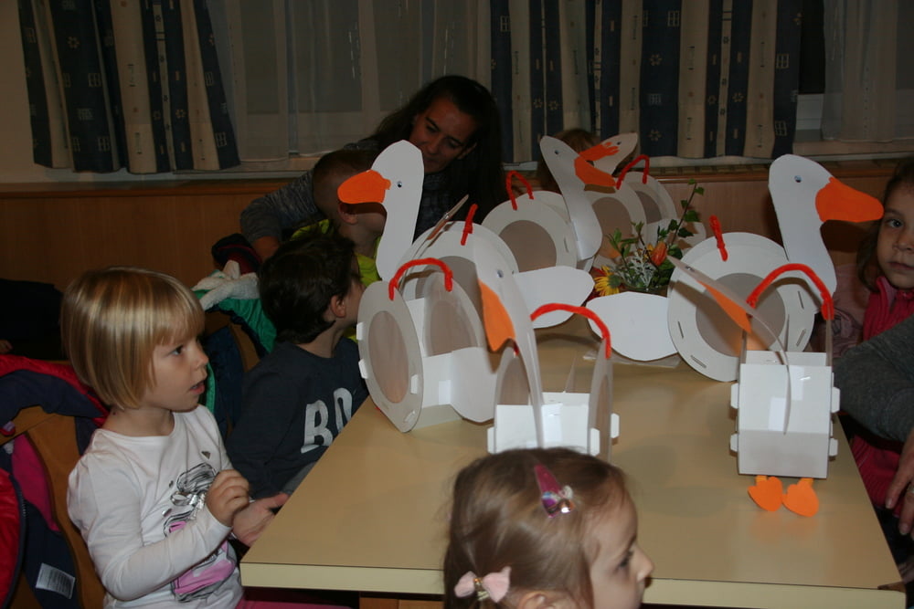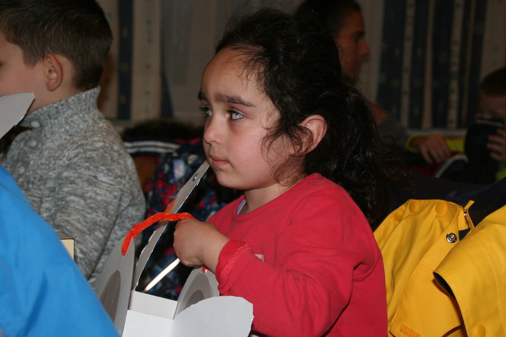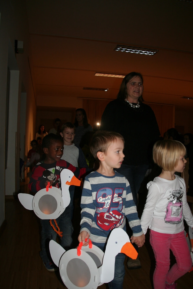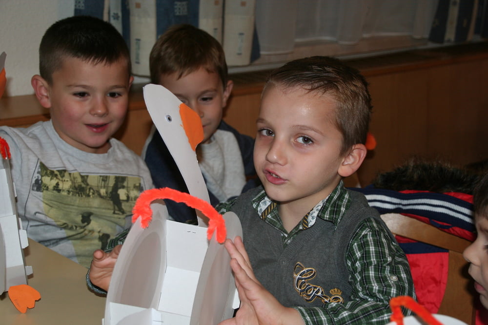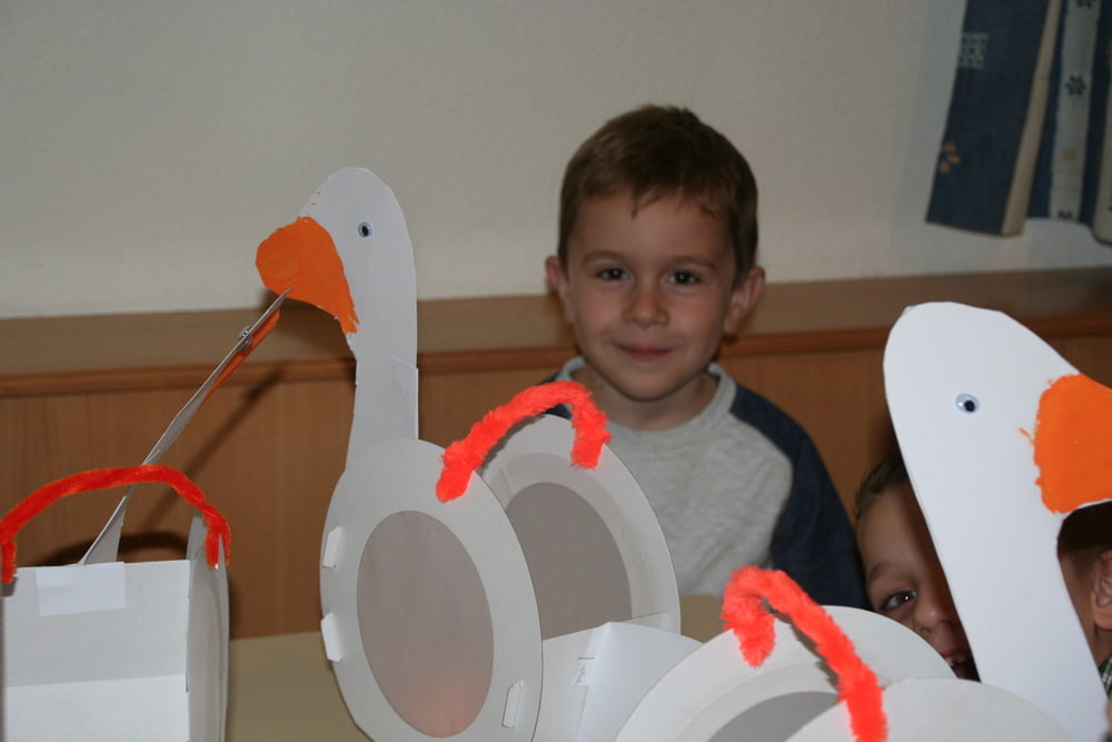 Mit selbstgebastelten Laternen ziehen sie im Pfarrsaal ein, singen Lieder, beten, musizieren und teilen zum Abschluß das Martinskipferl.