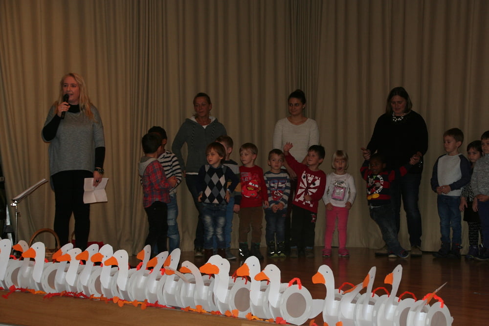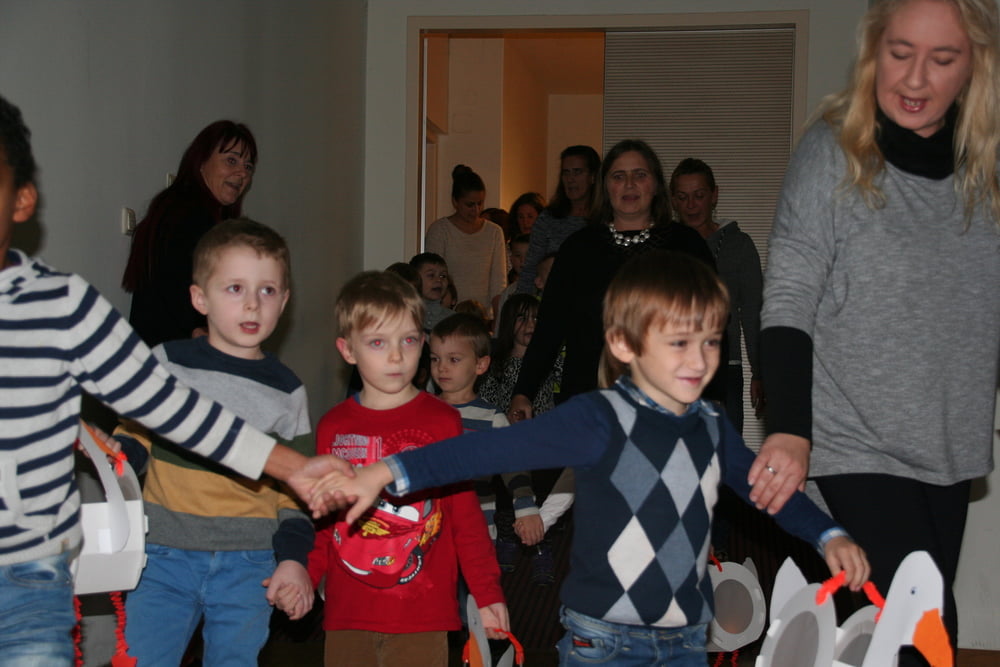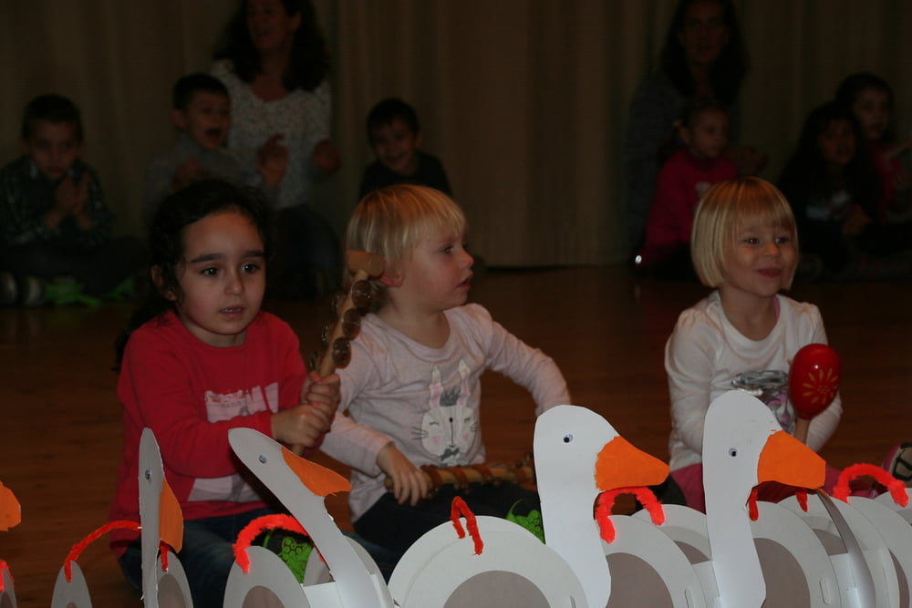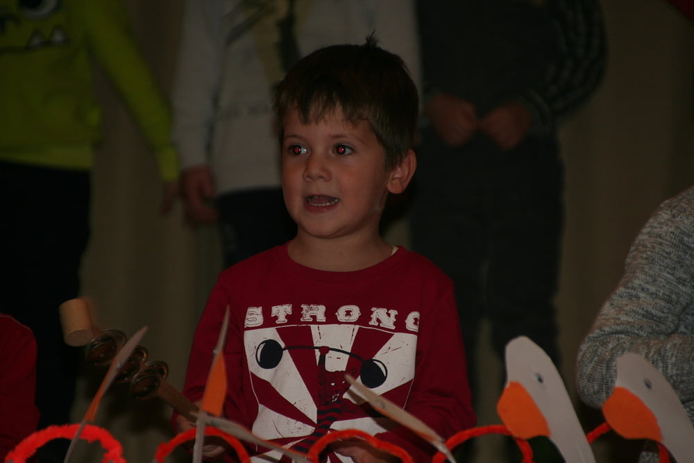 Die Kinder des Caritas-Kindergartens erzählen die Geschichte vom Hl. Martin.