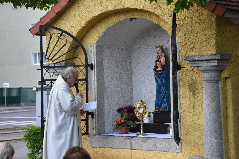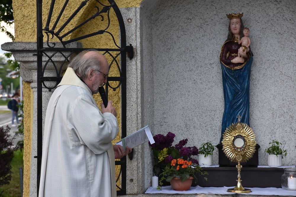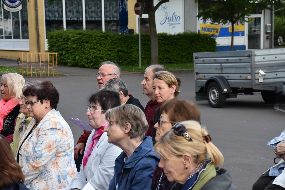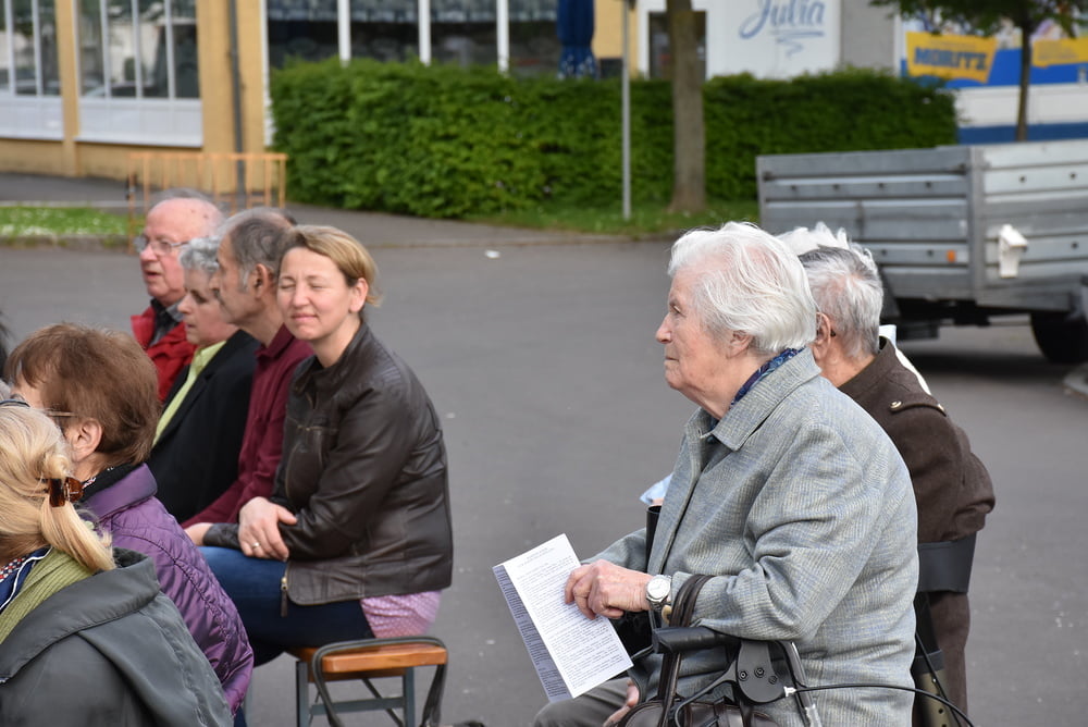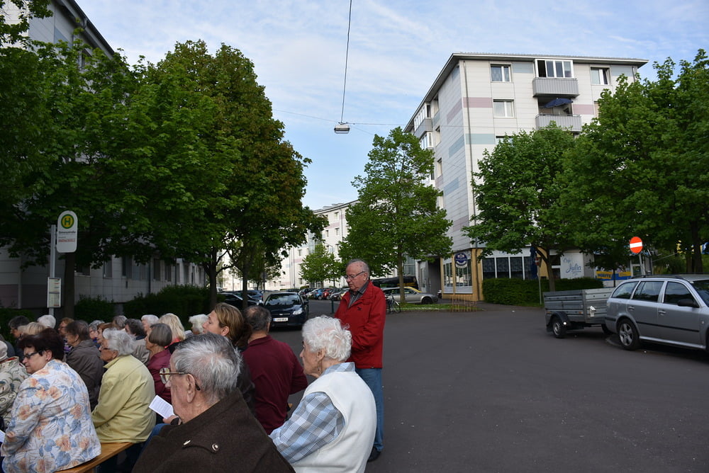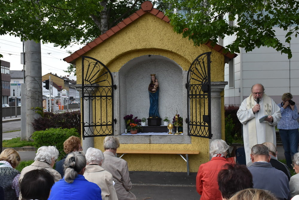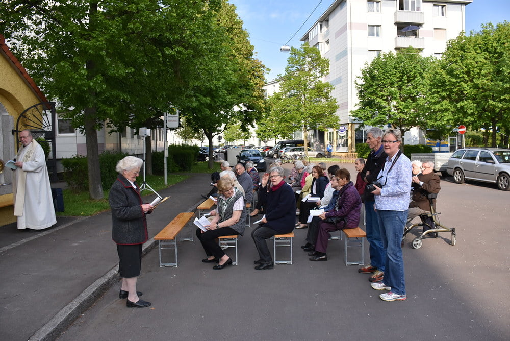 In dieser besonderen Maiandacht spiegelt sich der Gemeinschaftscharakter wider. Zwischen Autos, Straßenbahn und ratternden Motorrädern finden wir eine halbe Stunde Zeit für Besinnung und Gebet.
