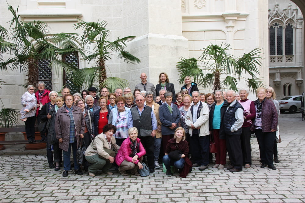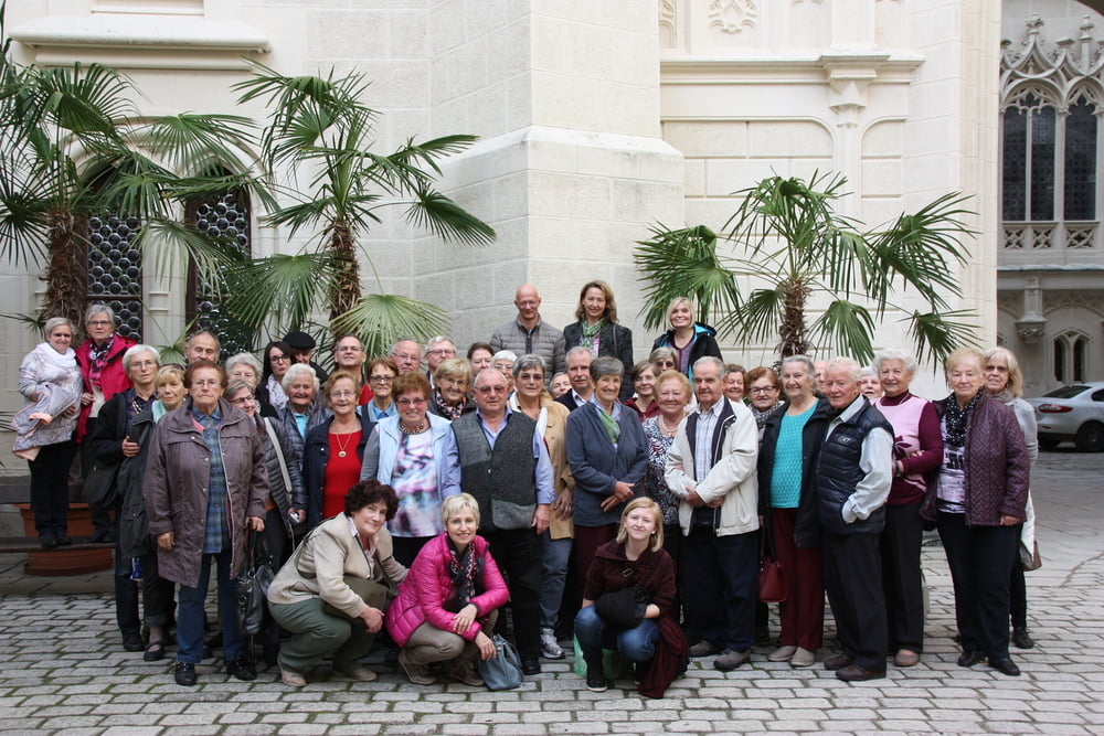 ...fuhren wir nach Budweis. Die Stadtführung war sehr interessant und der Marktplatz erstrahlte im goldenen Sonnenschein. Der Marktplatz ist übrigens ein wenig kleiner als der Linzer Hauptplatz. Nach einem böhmischen Essen machten wir uns auf zum Schloss Hlubeka. Nach dem Anstieg zum Schloss - ob mit Kutsche oder zu Fuß - hatten wir eine ausgezeichnete Führung durch das herrliche Schloss. Den Abschluss unseres schönen Ausflugs hatten wir im Franzosenhof in Wullowitz. Es war ein wunderschöner Ausflug zum Nationalfeiertag den wir alle sehr genoss en haben!