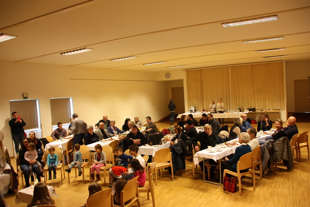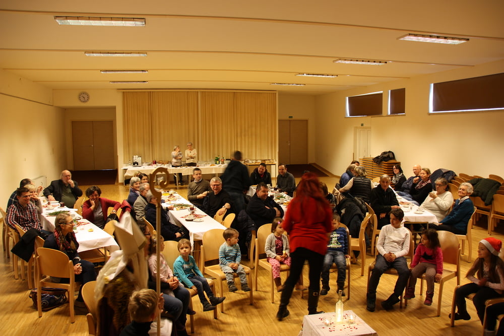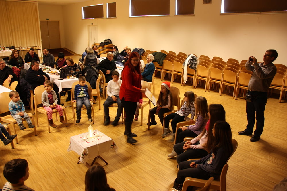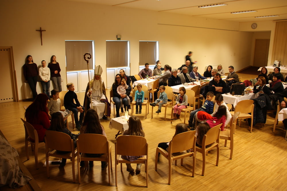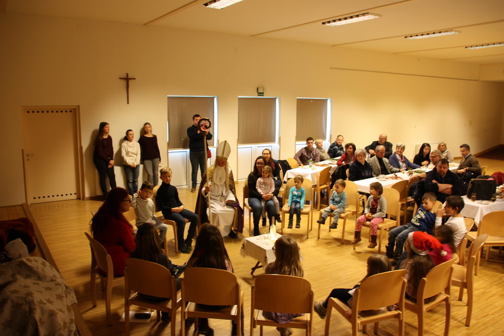 Im Pfarrsaal versammeln sich Kinder und ...
