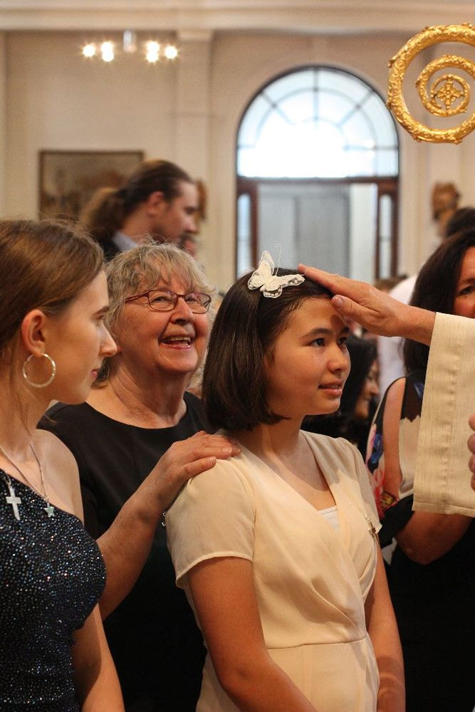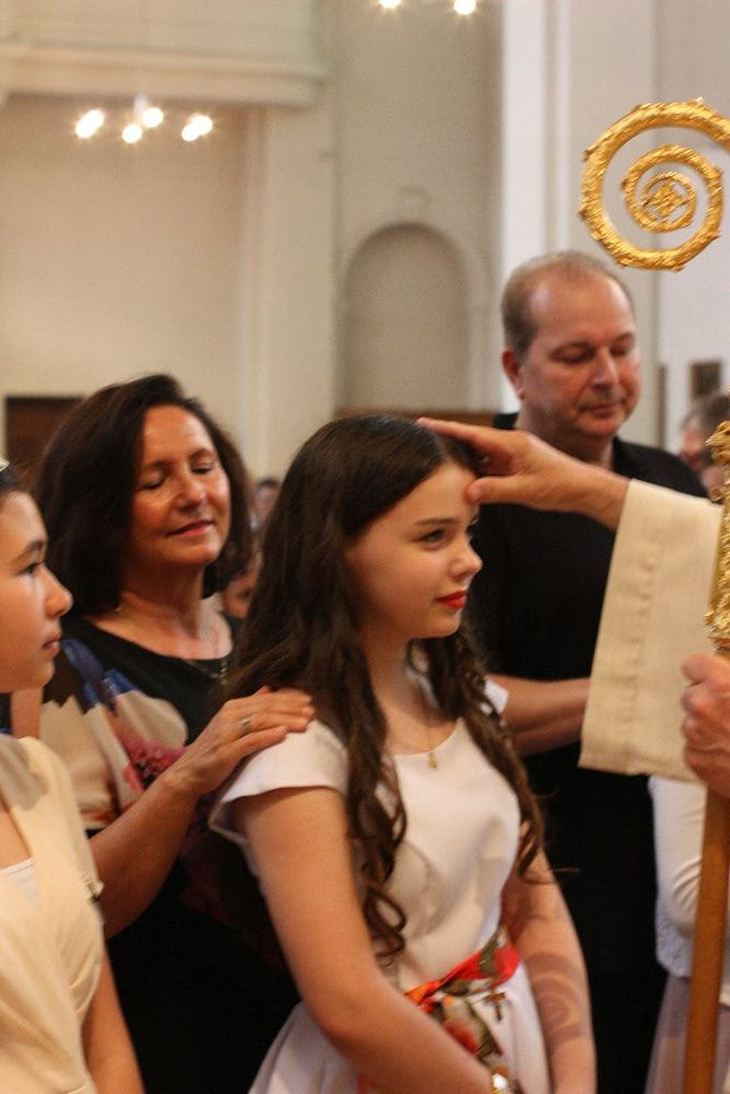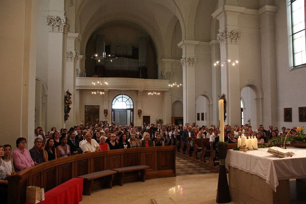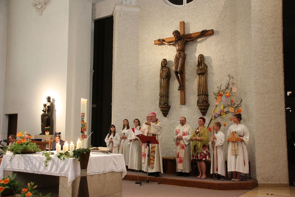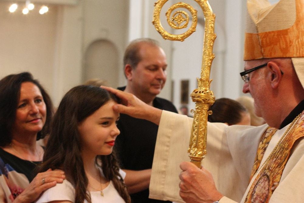 Prälat Johannes Holzinger, Propst des Stiftes St. Florian firmte die Jugendlichen der Pfarren Marcel Callo und St. Quirinus