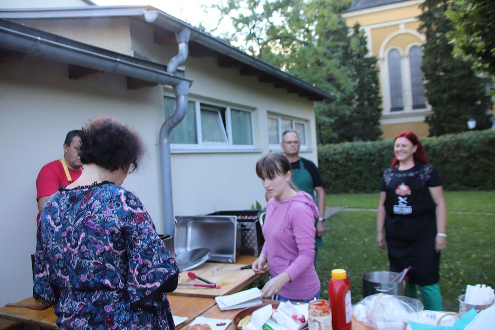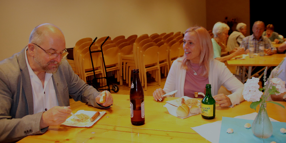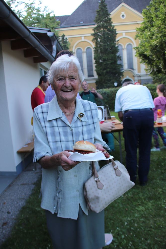 Dank vieler fleißiger Helfer war es wieder möglich, im Anschluss an den Gottesdienst gemütlich beisammen zu sitzen und Grillwürstel zu genießen.