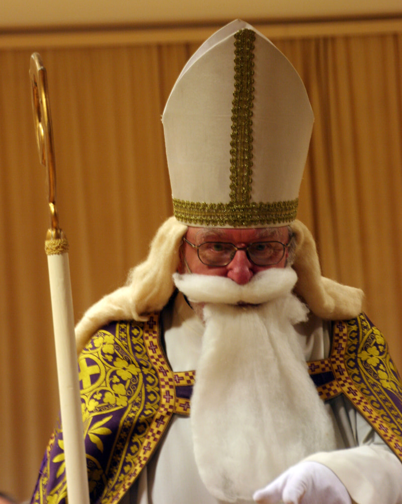 ... den Kindern Süßigkeiten, Mandarinen und Nüsse.Das Geheimnis um seinen Begleiter, den dummen Nuck, wurde im Anschluß an die Sonntagsmesse geklärt.