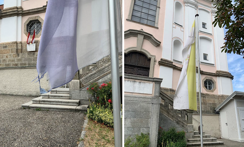 Marien - Wallfahrtsbasilika am Pöstlingberg Da unsere Kirchenfahnen bereits in einem sehr schlechten Zustand sind, bemühen wir uns gerade neue Fahnen anzuschaffen. Freiwillige Spenden dazu, nehmen wir gerne entgegen. Danke und Vergelt‘s Gott!