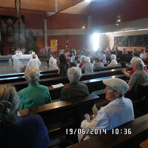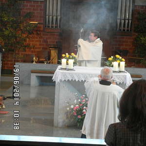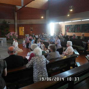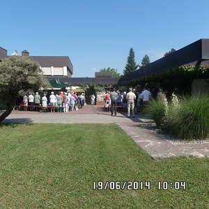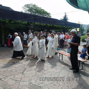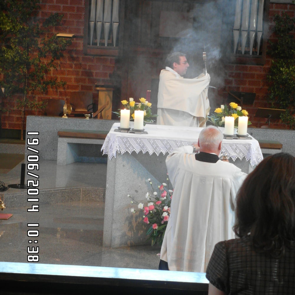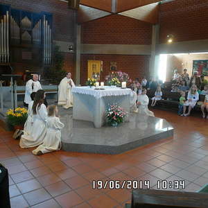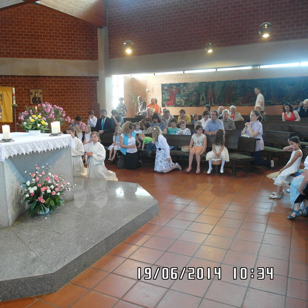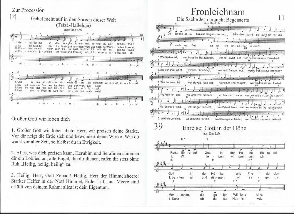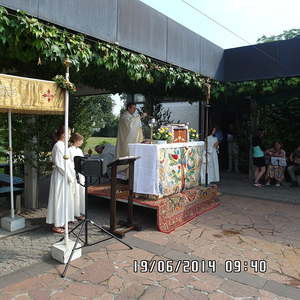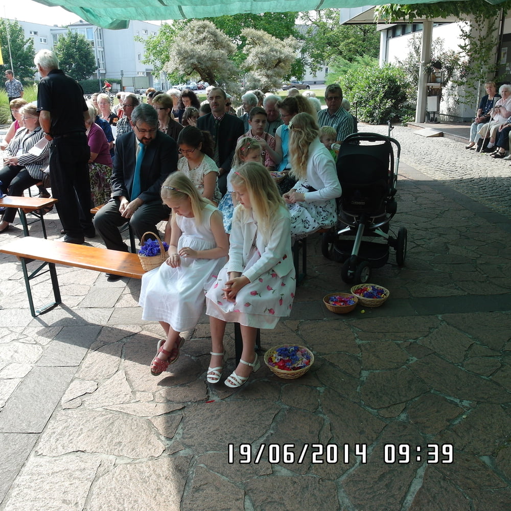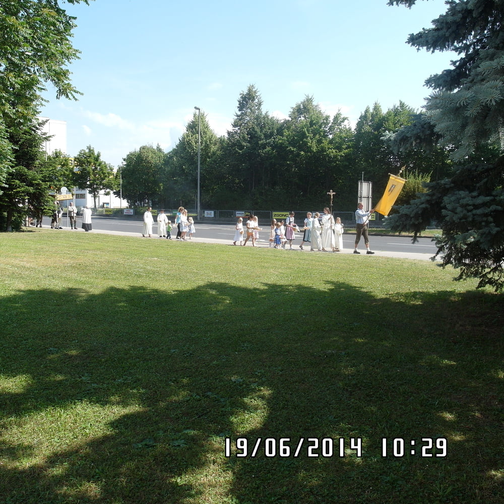 Der liebe Gott hat es mit uns gut gemeint und so konnten wir bei schönem Wetter am Pfarrplatz Fronleichnam feiern. Edith Pichler und Johann Haunschmied begleiteten die Messlieder von Fronleichnam mit der Gitarre. Die Prozession führte uns um die Kirche herum. In der Kirche erhielten wir zum Schluss den Segen.