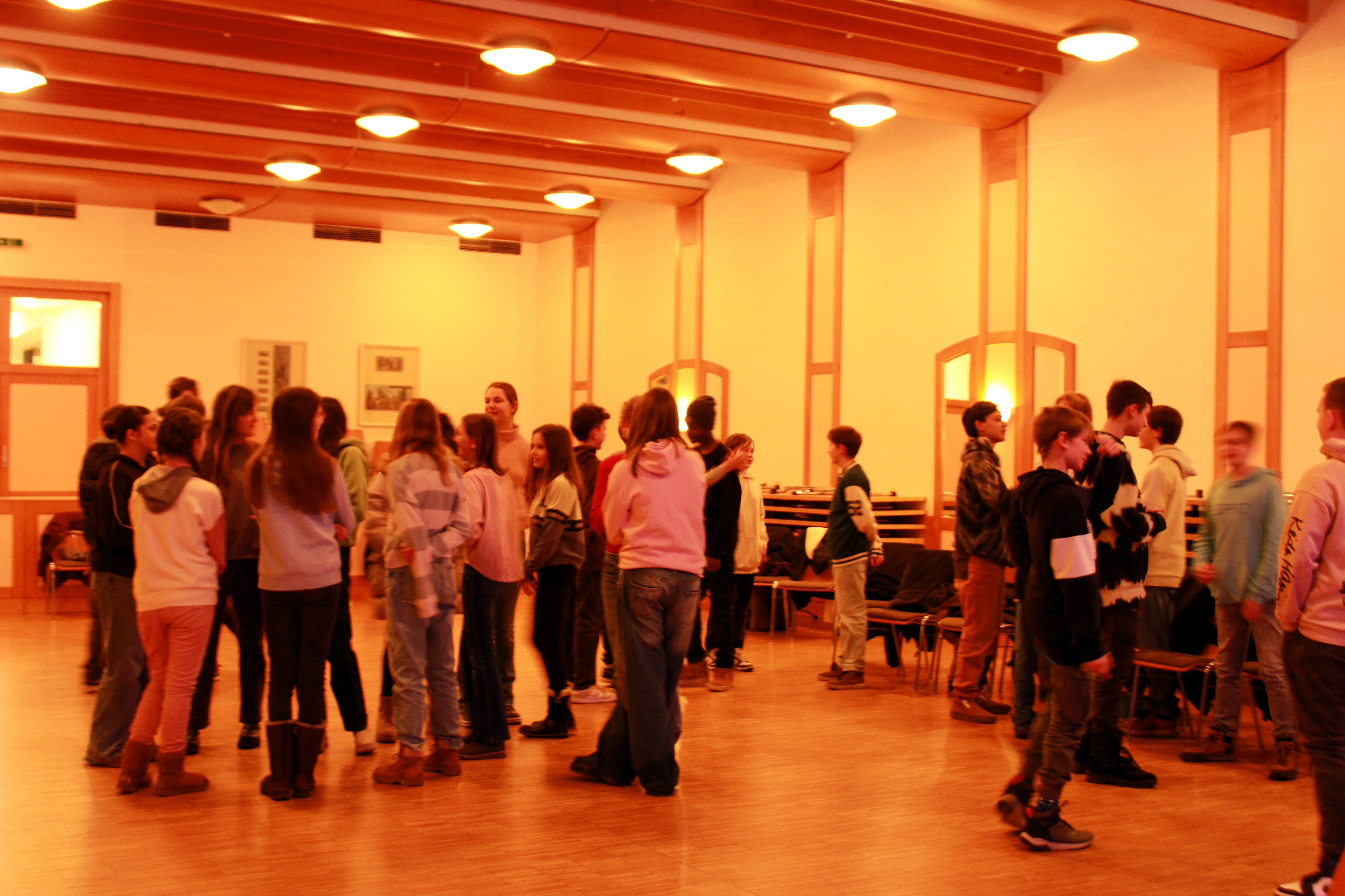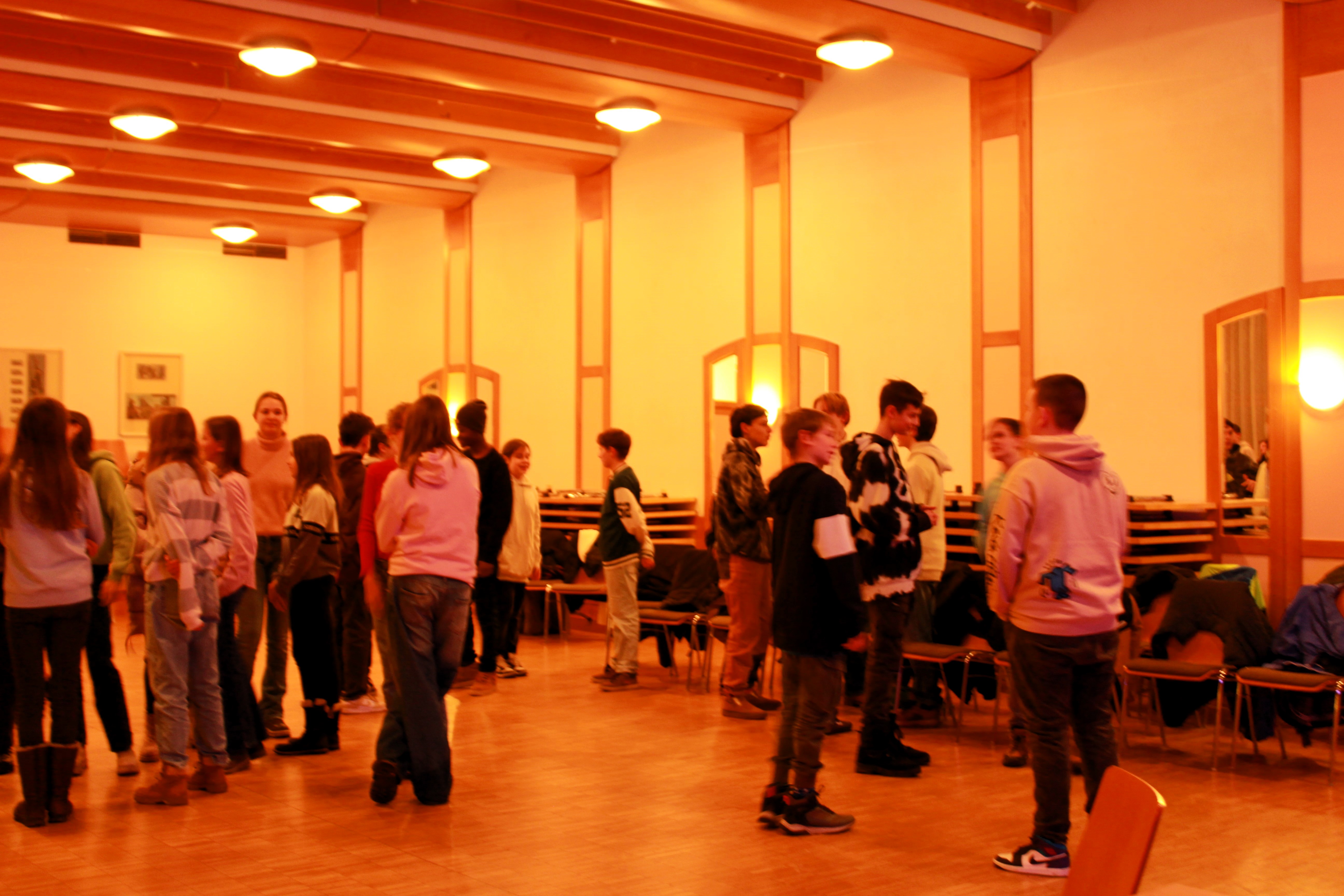 Aufgrund des Regens und des entstehenden Glatteises wurde der Firmstart kurzerhand in den Großen Pfarrsaal verlegt. Die anfängliche Verhaltenheit wich spätestens bei den äußerst kreativen Kennenlernfragen und bei der bravourös gemeisterten Aufgabe sich alphabetisch nach dem Vornamen aufzustellen.