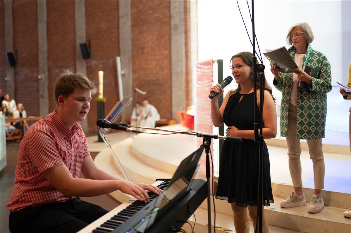 Musikalisch umrahmt wurde die Feier durch Konchord. Zur Kommunion sangen 2 Gefirmte aus dem vergangenen Jahr ein umjubeltes Duett, Alexander Holzer und Hesi Seeber. Nach der Firmung lud der Fachausschuss Jugend und Junge Erwachsene zur Agape auf den Kirchenplatz.