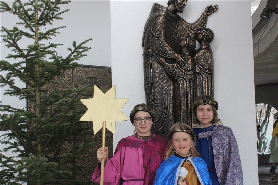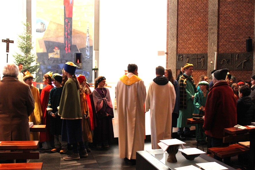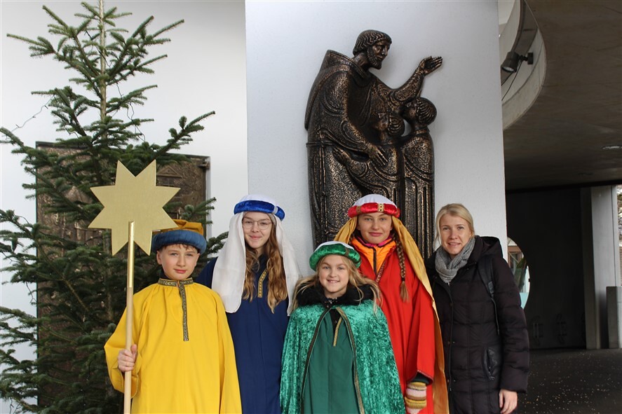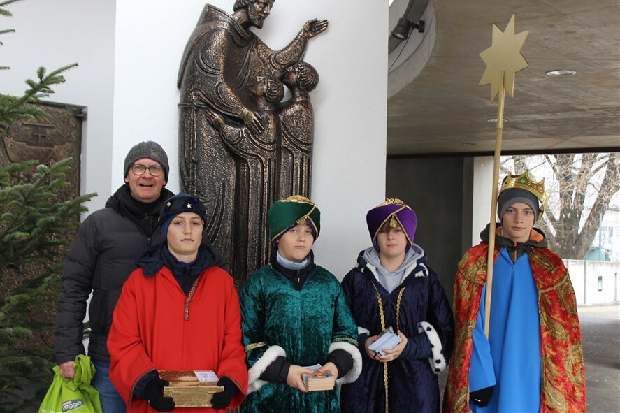 Rund 50 Kinder und Jugendliche, 15 Erwachsene, 3 Fahrer:innen und 20 Begeiter:innen besuchten das Pfarrgebiet endlich wieder flächendeckend. Das ist für das Organisationsteam, heuer bestehend aus Mathilda Bruckmayr und Antonia Reisinger unterstützt durch Matilda Öllinger, Melanie Oman und Leni Wieshofer, jedes Jahr wieder eine große Herausforderung; diese wurde entspannt, mit großer Leidenschaft für die Aktion und noch größerer Freude bewältigt. Besonders konnte man diese Freude beim Gottesdienst spüren, in dem die Sternsinger:innen Kyriegedanken, die Lesung, die Fürbitten und einen Teil der Predigt übernommen haben. Versüßt wurde das alljährliche Dankessen wieder durch Krapfen, die uns Frau Vizebürgermeisterin Tina Blöchl nach dem Gottesdienst gespendet hat. Wir haben heuer 20.748,38 Euro gesammelt. Ein herzliches Vergelts Gott an alle Spender:innen und alle an der Aktion Beteiligten.