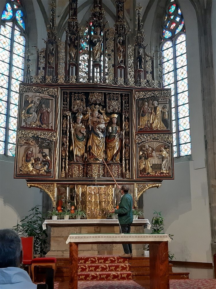 Unser kompetenter Führer in der Pfarrkirche Gampern mit ihrem prachtvollen Flügelaltar war kein Geringerer als KR Mag. Reinhold Stangl, der langjährige Pfarrer, höchstpersönlich. Auch die Führung im Stehrerhof war sehr interessant und kurzweilig.