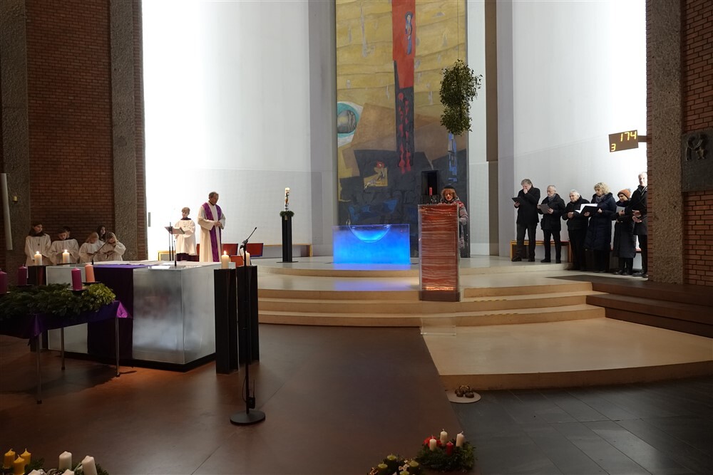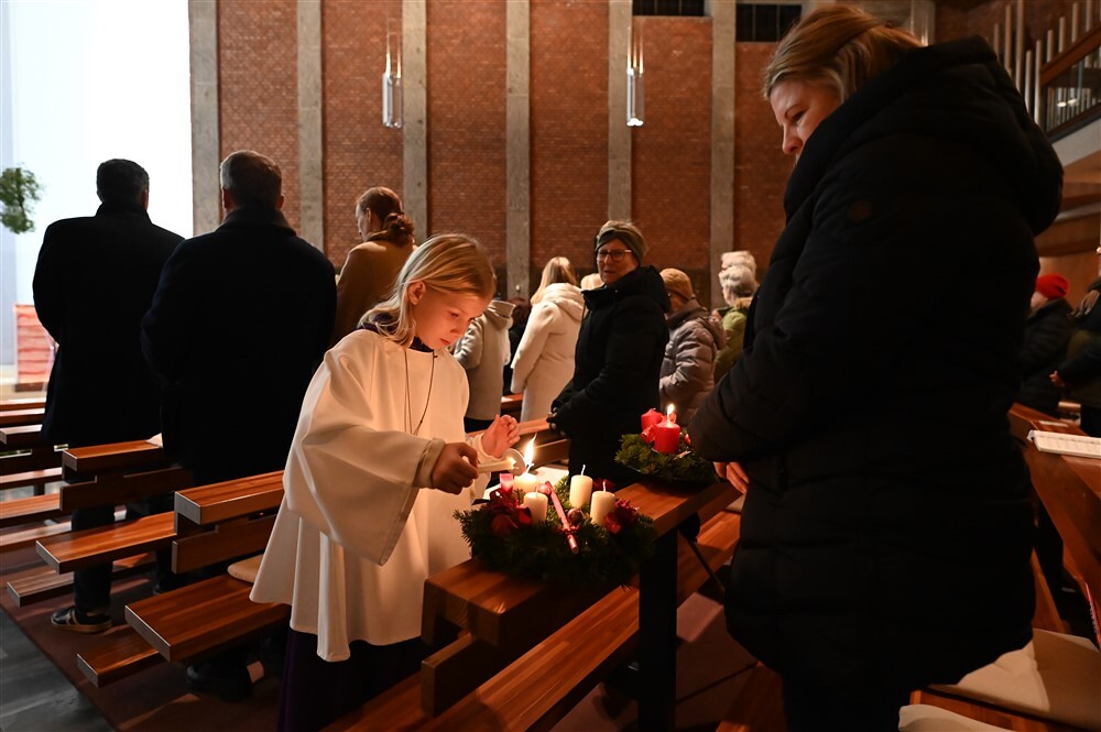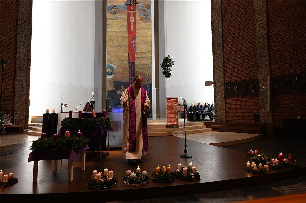 Beim abendlichen Gottesdienst wurde bei den mitgebrachten oder vom Team des Eine - Welt - Kreises erworbenen Adventkränzen von den Minis die erste Kerze entzündet und diese von Dr. Martin Füreder als Zeichen der Hoffnung und Zuversicht gesegnet.