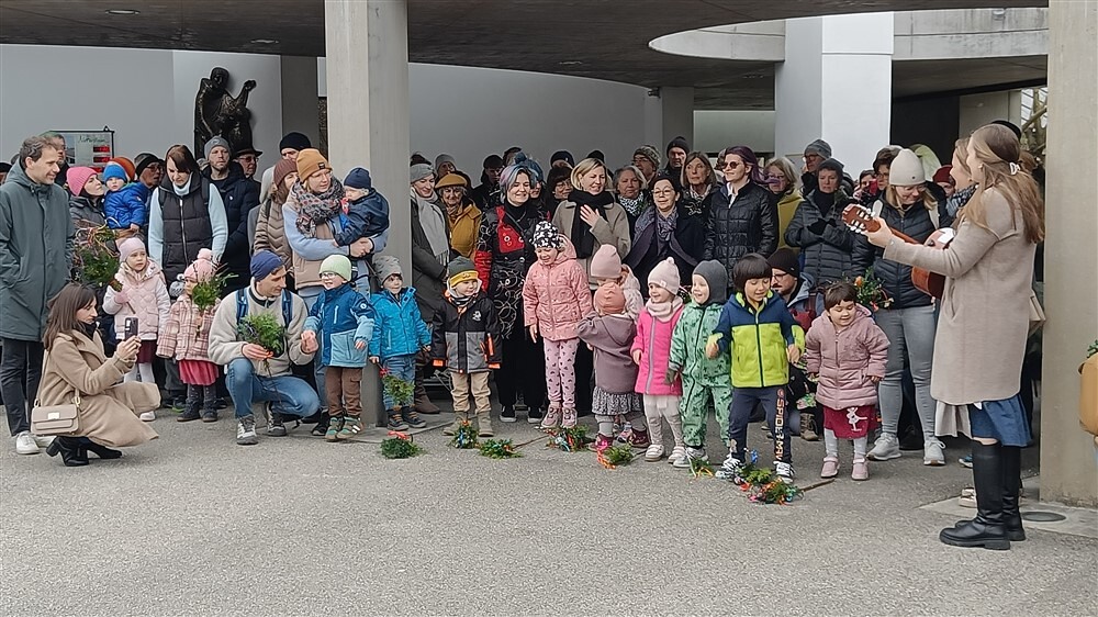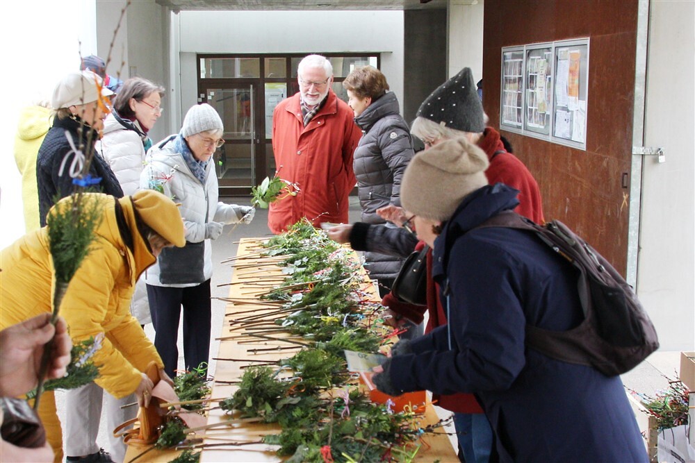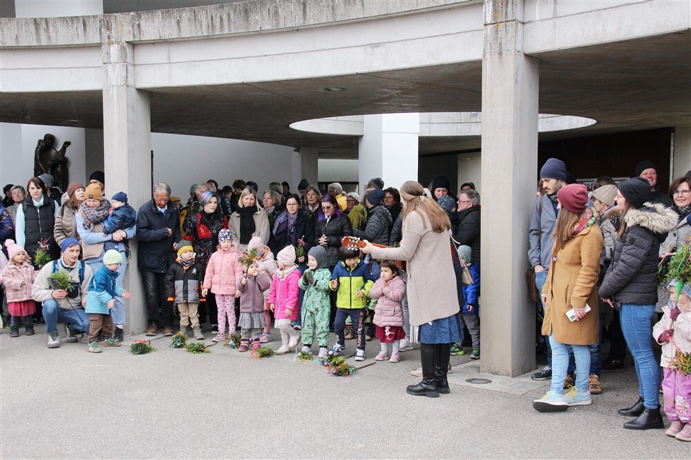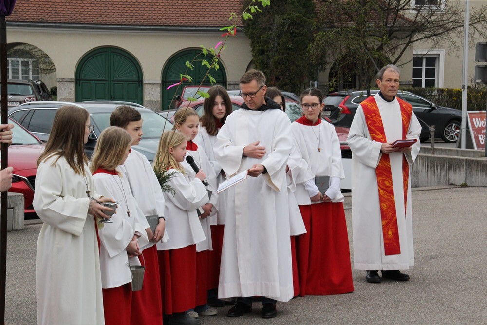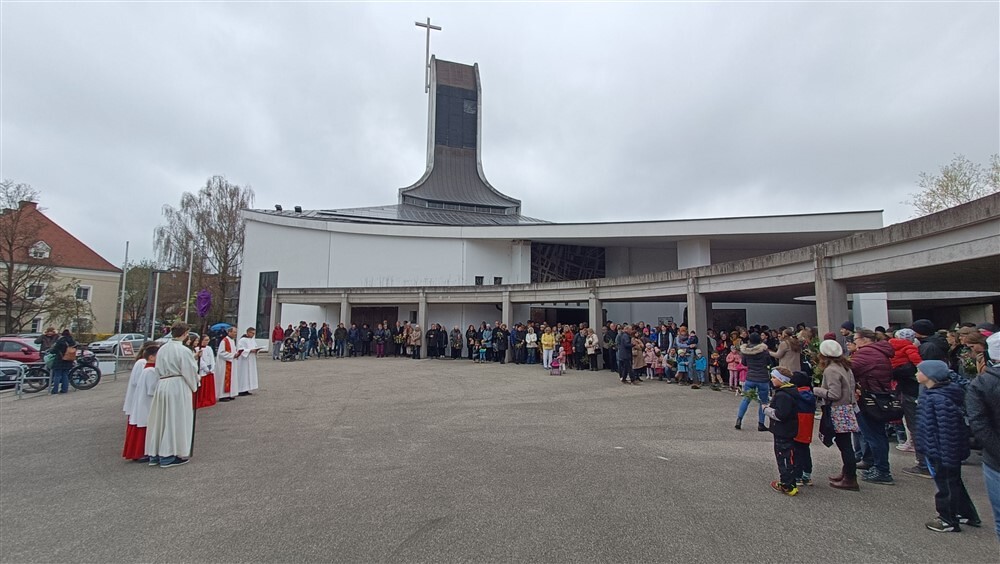Der abschließende Dank gilt dem Eine–Welt–Kreis für das Binden und den Verkauf vieler bunter Palmbuschen und fair gehandelter Produkte, den Kindergartenkindern mit ihren Pädagoginnen und den Minis für die feierliche Mitgestaltung der Palmweihe, dem KWGteam, den Lektor:innen der Passionsgeschichte und allen Mitwirkenden für die Gestaltung der Liturgie zum Palmsonntag.