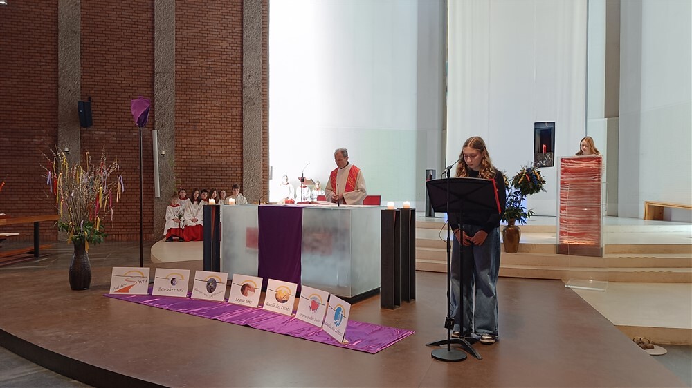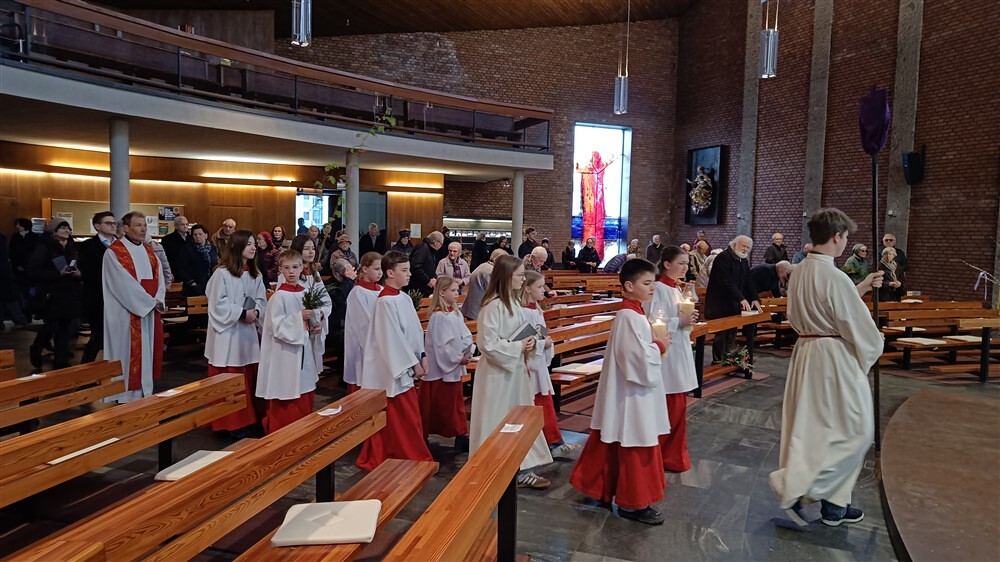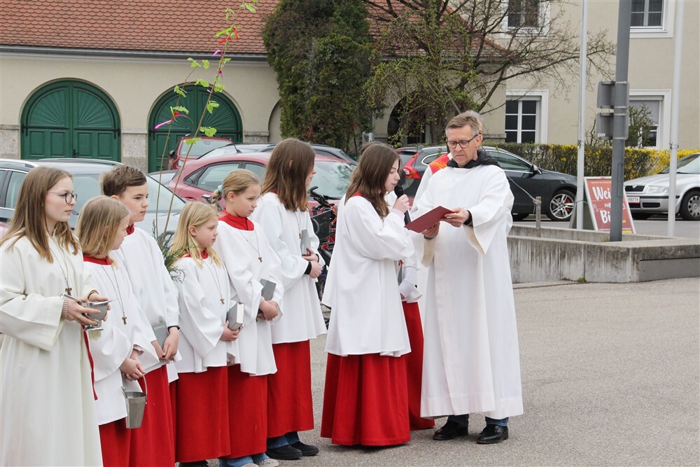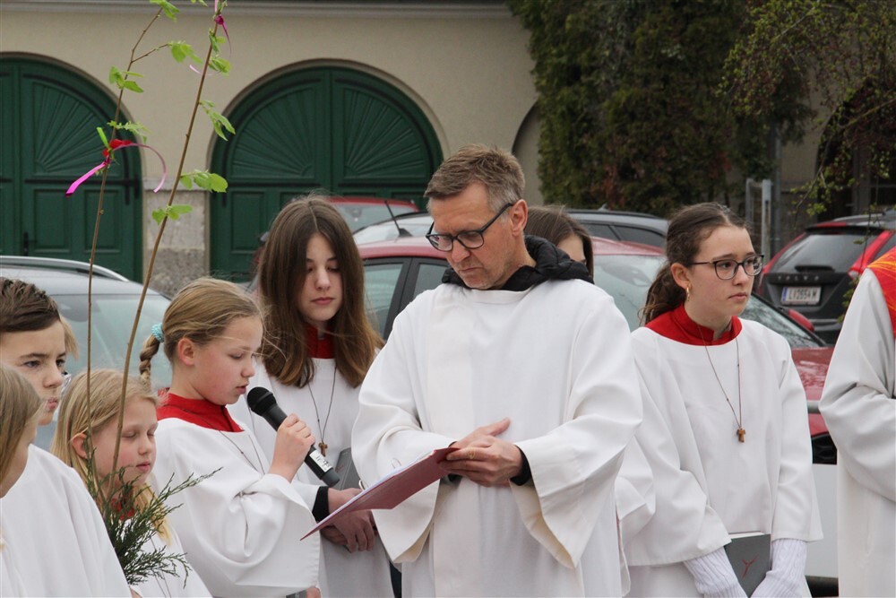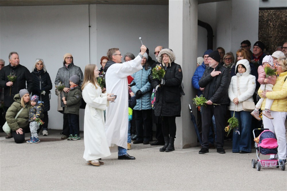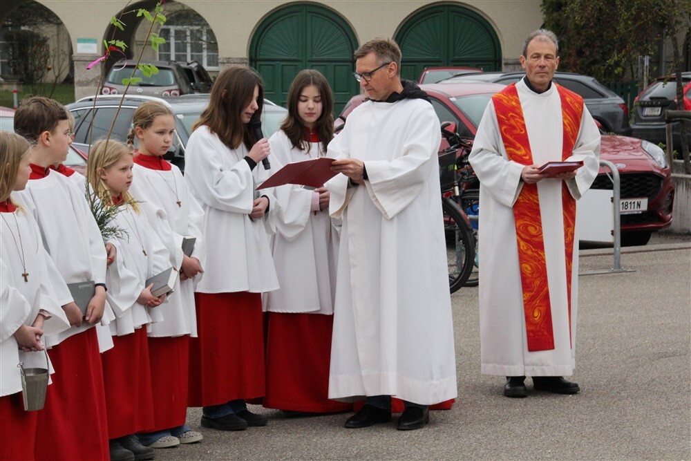 Der abschließende Dank gilt dem Eine–Welt–Kreis für das Binden und den Verkauf vieler bunter Palmbuschen und fair gehandelter Produkte, den Kindergartenkindern mit ihren Pädagoginnen und den Minis für die feierliche Mitgestaltung der Palmweihe, dem KWGteam, den Lektor:innen der Passionsgeschichte und allen Mitwirkenden für die Gestaltung der Liturgie zum Palmsonntag.