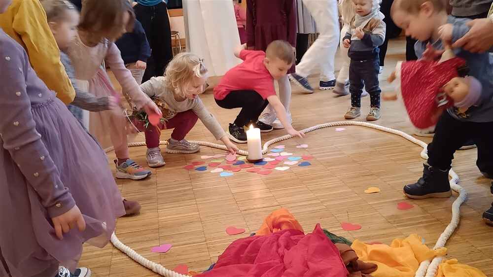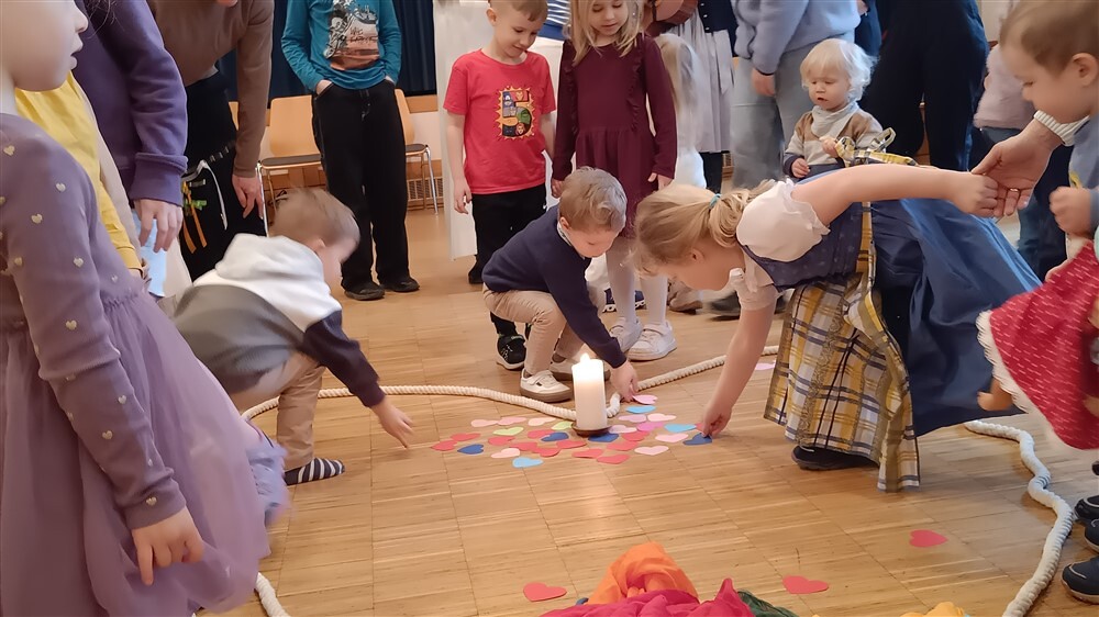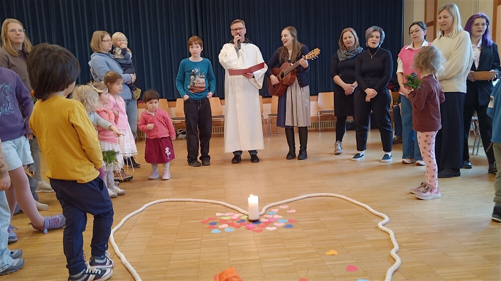 Im Pfarrsaal versammelten sich mit unserem Seelsorgeverantwortlichen Dr. Josef Hansbauer viele Kinder mit ihren Eltern und Großeltern, um Jesus als ihren Herzenskönig in ihrer Herzensstadt Jerusalem zu begrüßen. Dabei konnten sie feststellen, dass Jesus kein mächtiger König auf einem Thron ist sondern eben ein „Herzenskönig“, der den Menschen Liebe, Geduld und Freude bringt und ihre Herzen froh und hell macht.