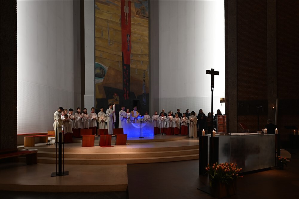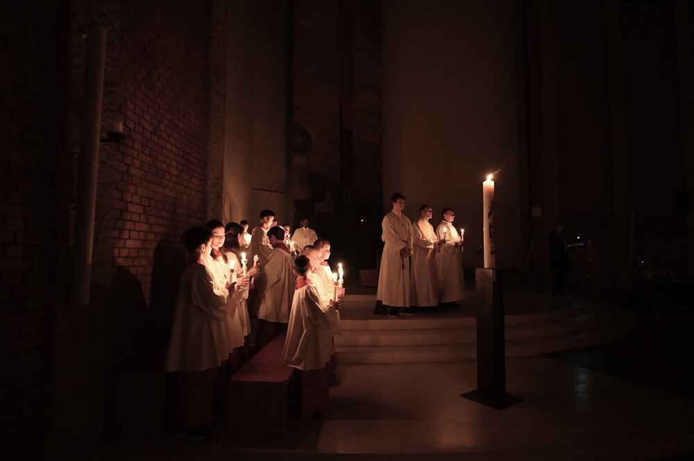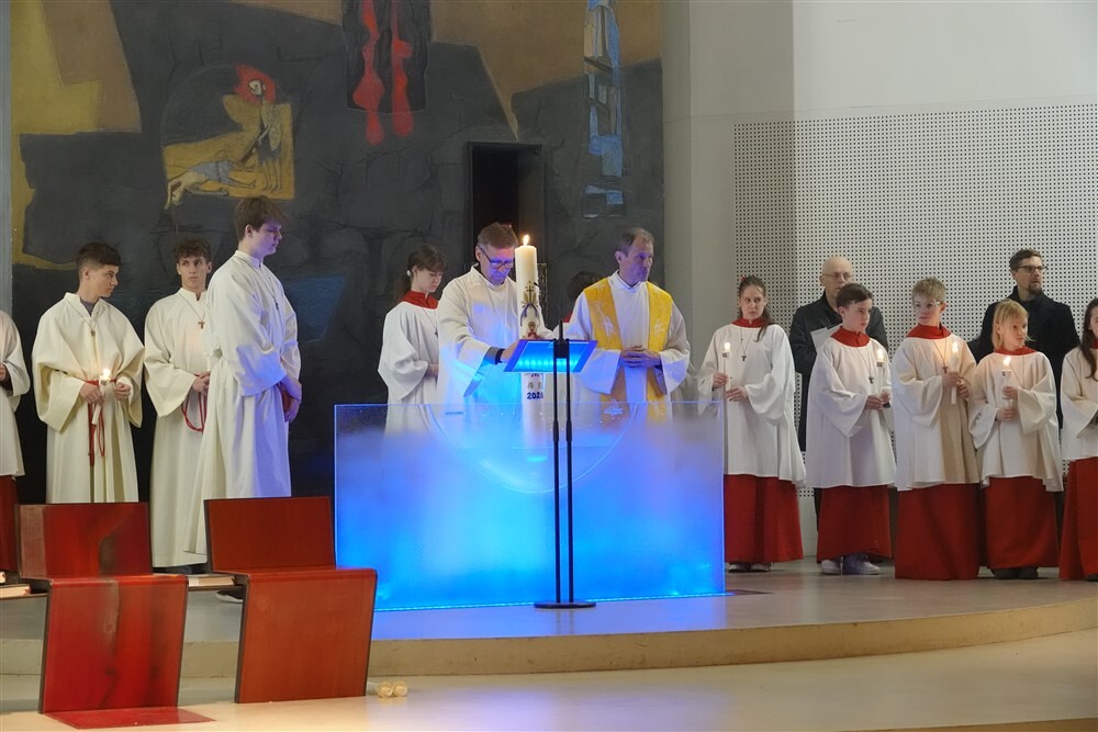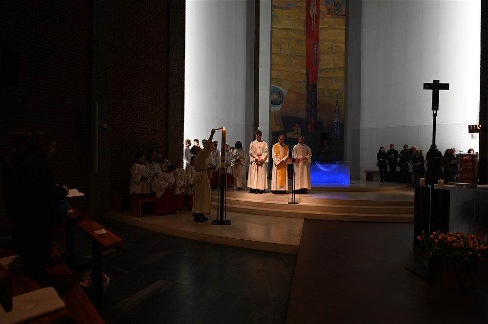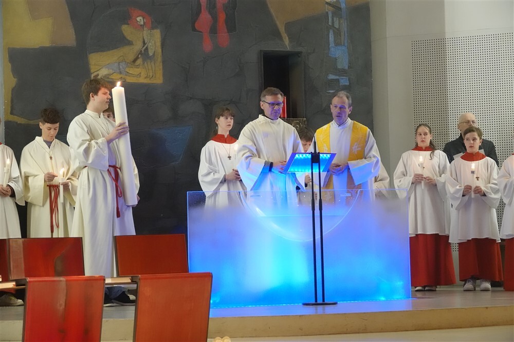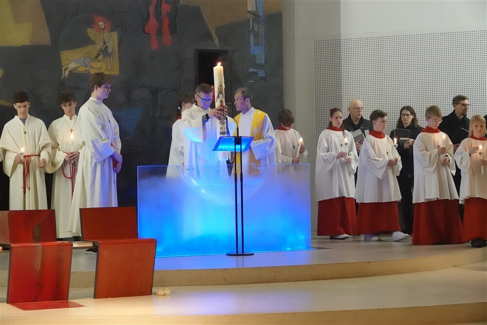 Die drei Lesungen des Wortgottesdienstes erinnerten uns in historischer Tradition daran, dass das österliche Geschehen mit Gottes Schöpfungshandeln beginnt und schließlich in der völligen Zuwendung Christi zu uns Menschen endet.