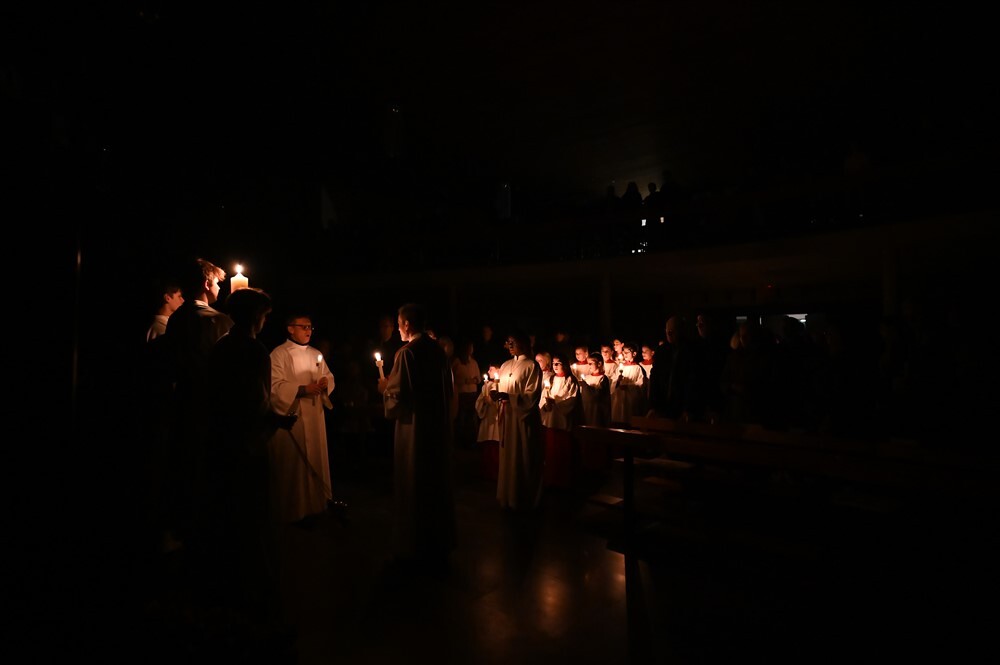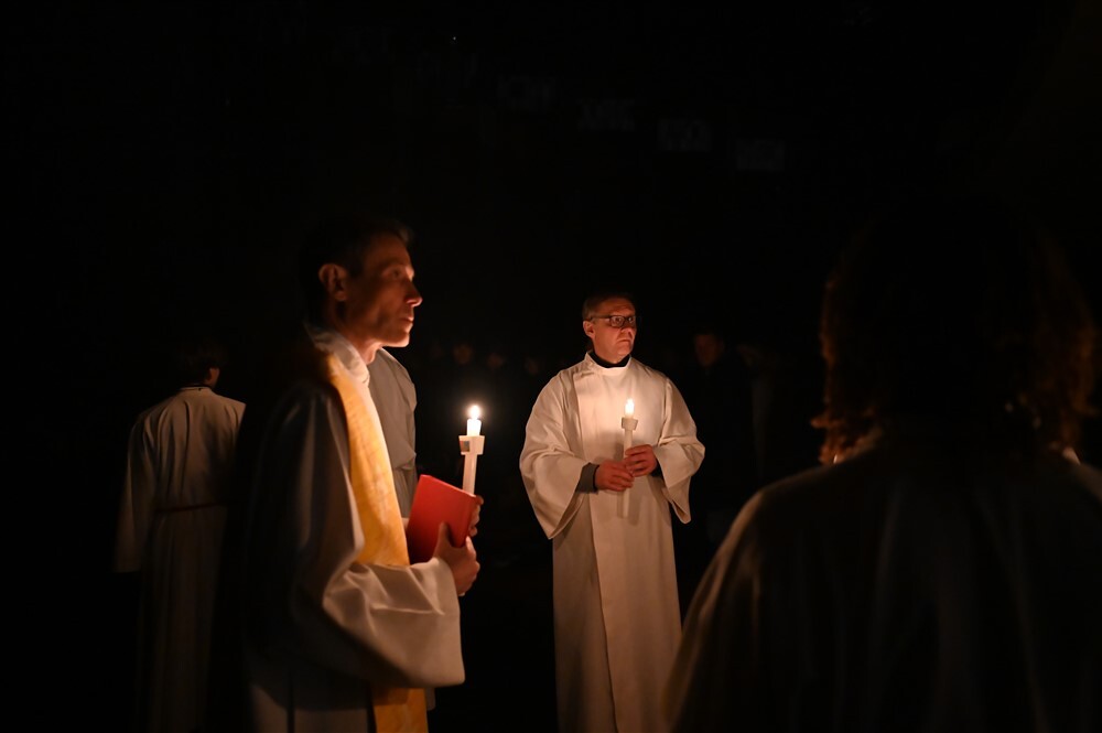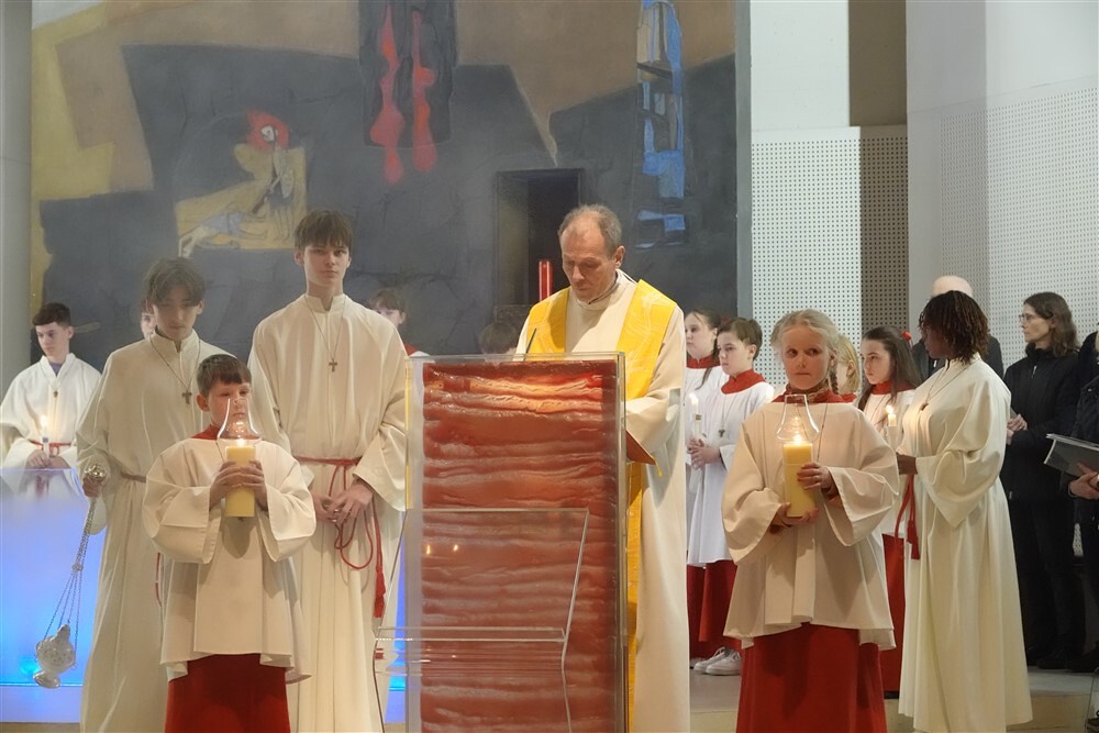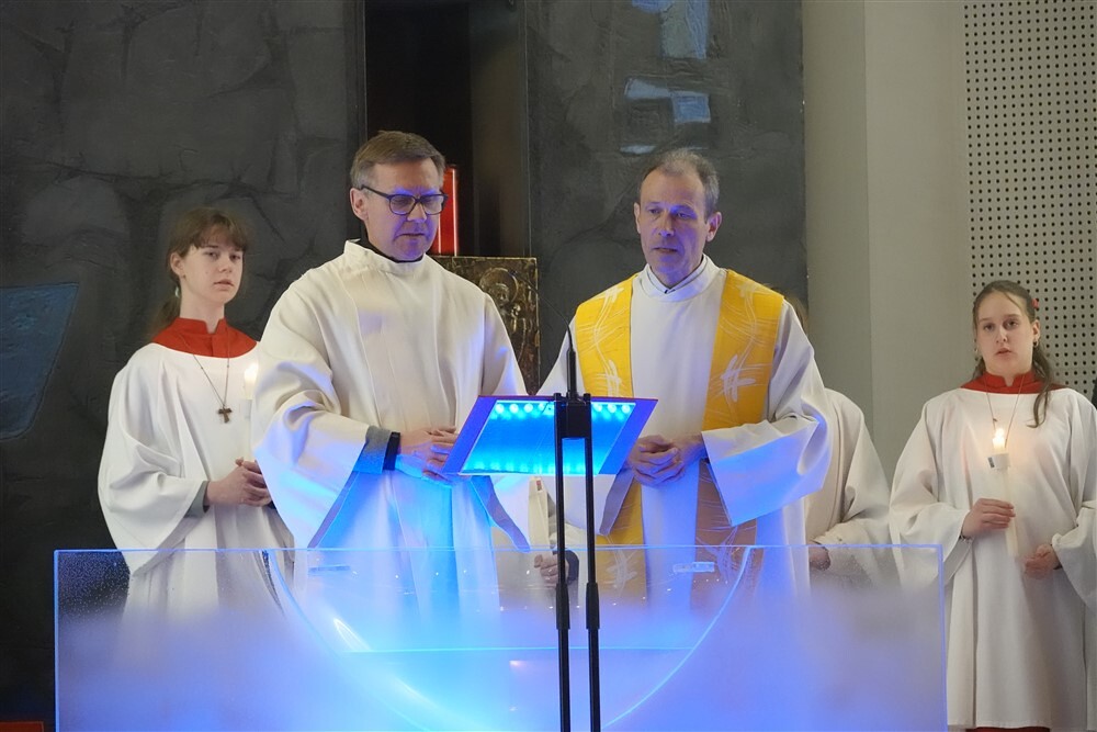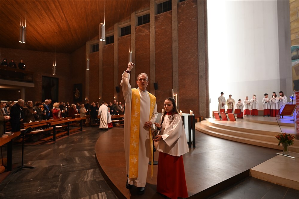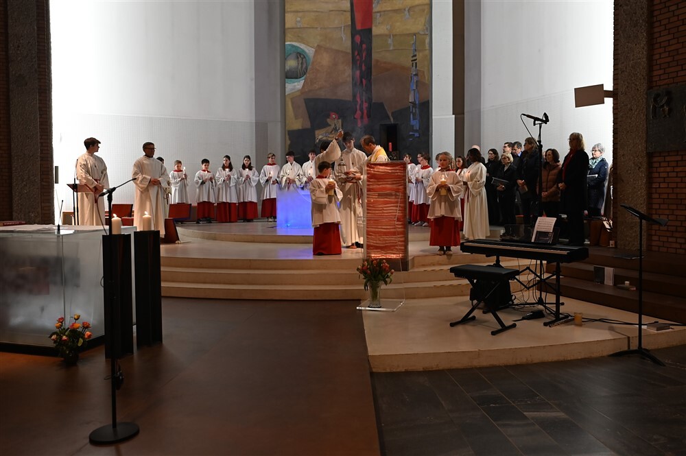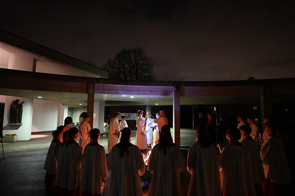 Die drei Lesungen des Wortgottesdienstes erinnerten uns in historischer Tradition daran, dass das österliche Geschehen mit Gottes Schöpfungshandeln beginnt und schließlich in der völligen Zuwendung Christi zu uns Menschen endet.