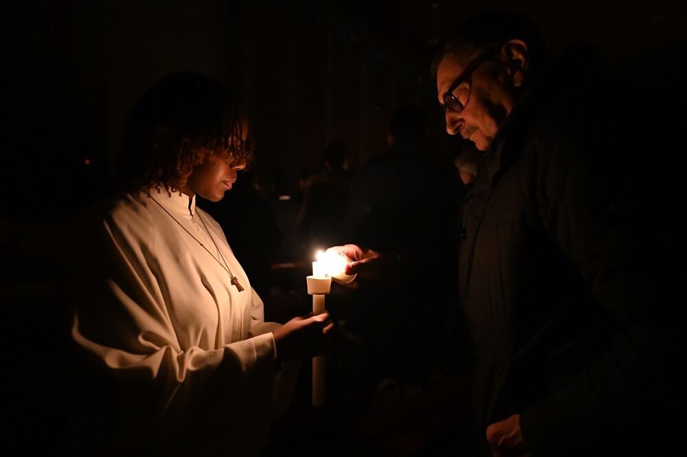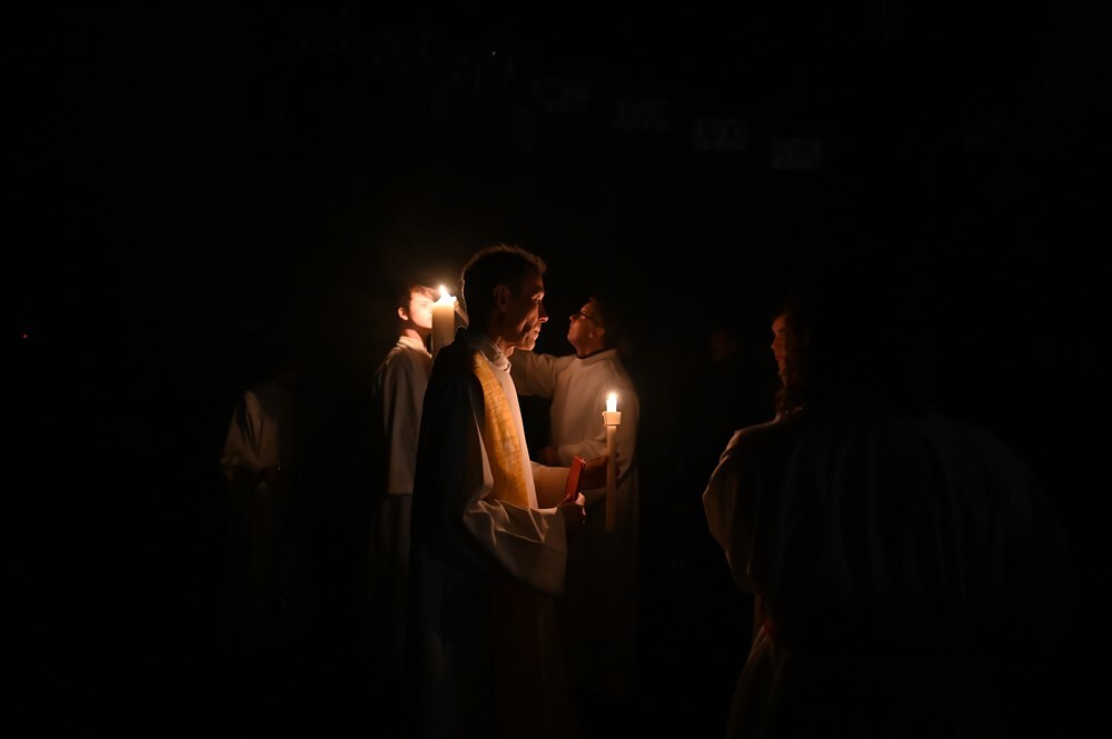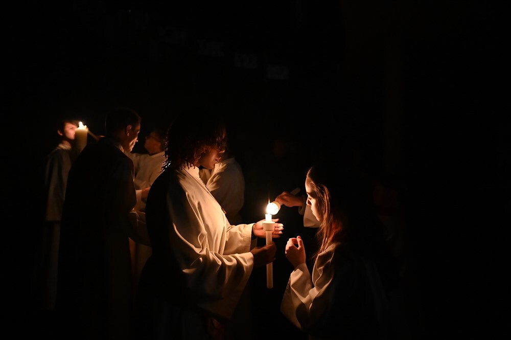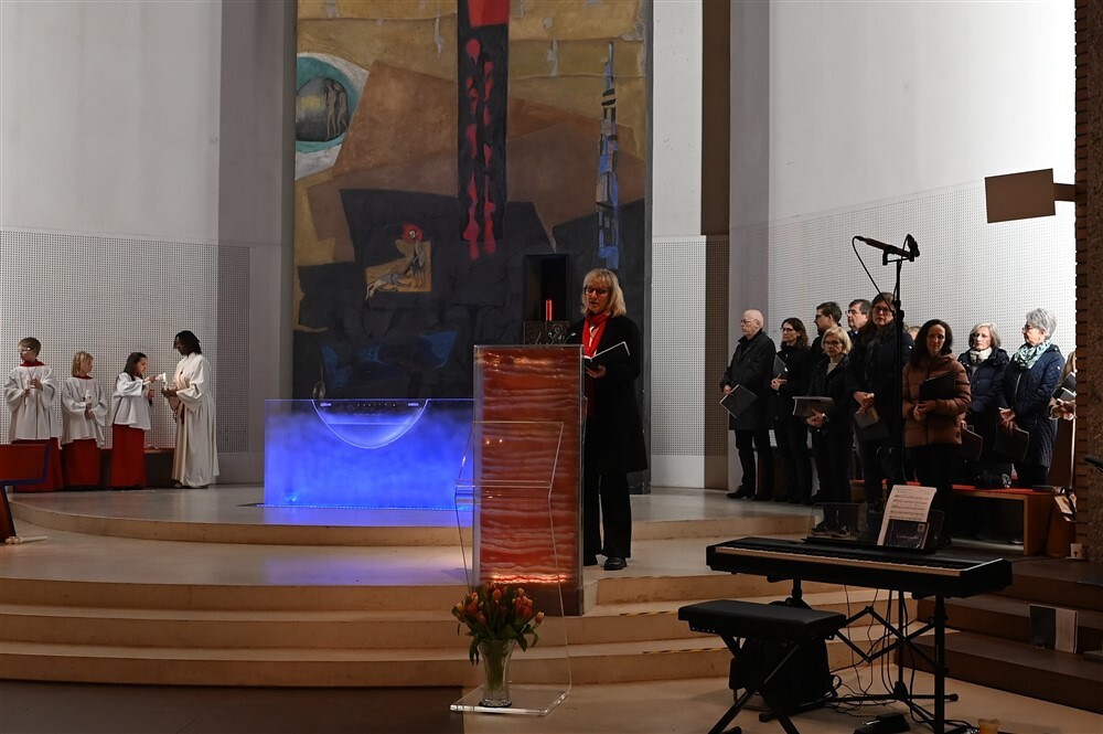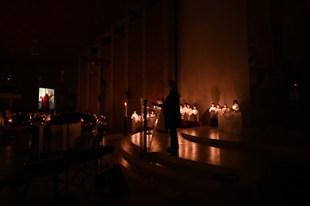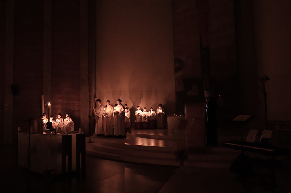 Mit dem von Barbara Lengauer gesungenen Exsultet erklang der freudige Osterjubel, der zum Ausdruck brachte, dass in dieser Nacht Himmel und Erde versöhnt und in ein Fest des Lichts verwandelt werden.