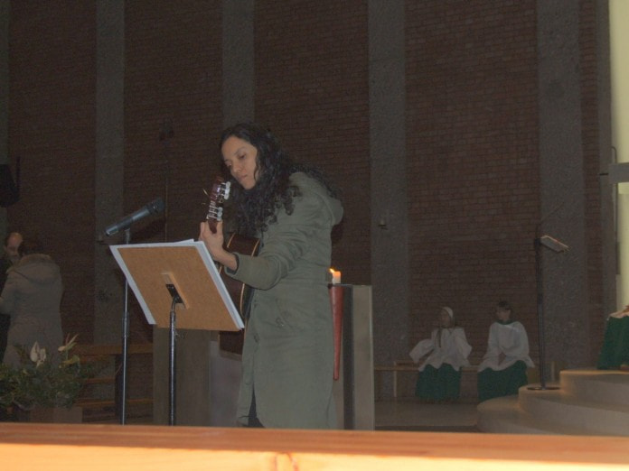 Unsere Bilder zeigen Mag. Doris Huber bei der Vorstellung des Projektes und Lina Maria Venegas mit der Gitarre.