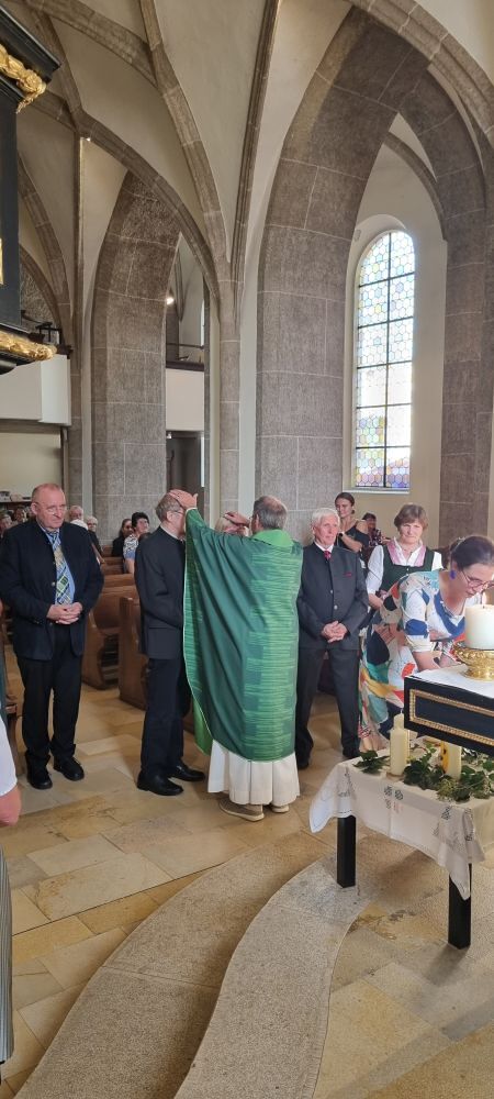 Am Sonntag, 17. September waren um 9:00 Uhr alle Paare, die 2023 auf mehrere oder viele gemeinsame Jahre zurückblicken dürfen, zum Festgottesdienst und zur Einzelsegnung eingeladen. Musikalisch wurde die Messe vom Familienchor feierlich gestaltet.