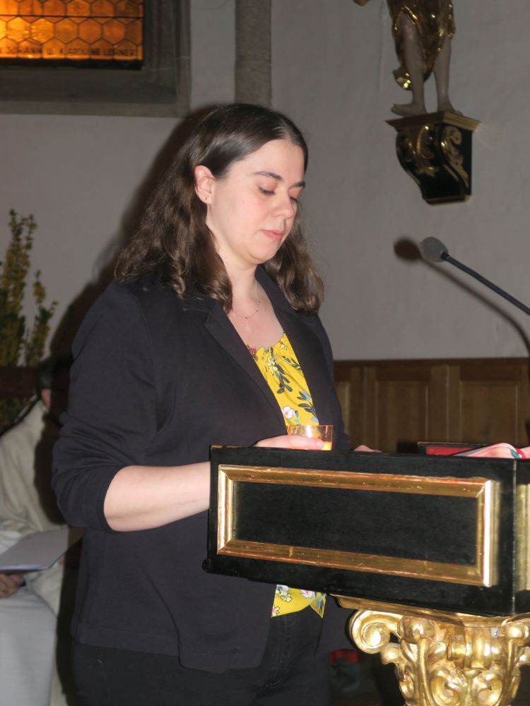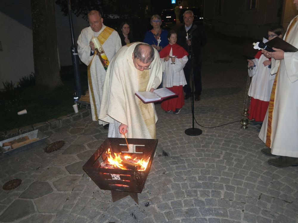 Osternachtsfeier am 30. 3.: Diese Feier begann mit der Segnung des Osterfeuers, das von einer Gruppe junger Mitglieder der Feuerwehr St. Magdalena vorbereitet und gehütet wurde, auf dem Dorfplatz. Am Osterfeuer wurde die Osterkerze entzündet, die dann mit dem Ruf "Lumen Christi (= Licht Christi) in die dunkle Kirche getragen wurde. Das große österliche Loblied, die Weihe des Taufwassers, die Erneuerung des Taufversprechens waren weitere wichtige Elemente des Gottesdienstes. Am Ende wurden die mitgebrachten Speisen sowie die Osterbrote gesegnet, die im Anschluss von Jugendlichen verteilt wurden. Musikalisch wurde die Feier wieder vom Familienchor feierlich gestaltet.