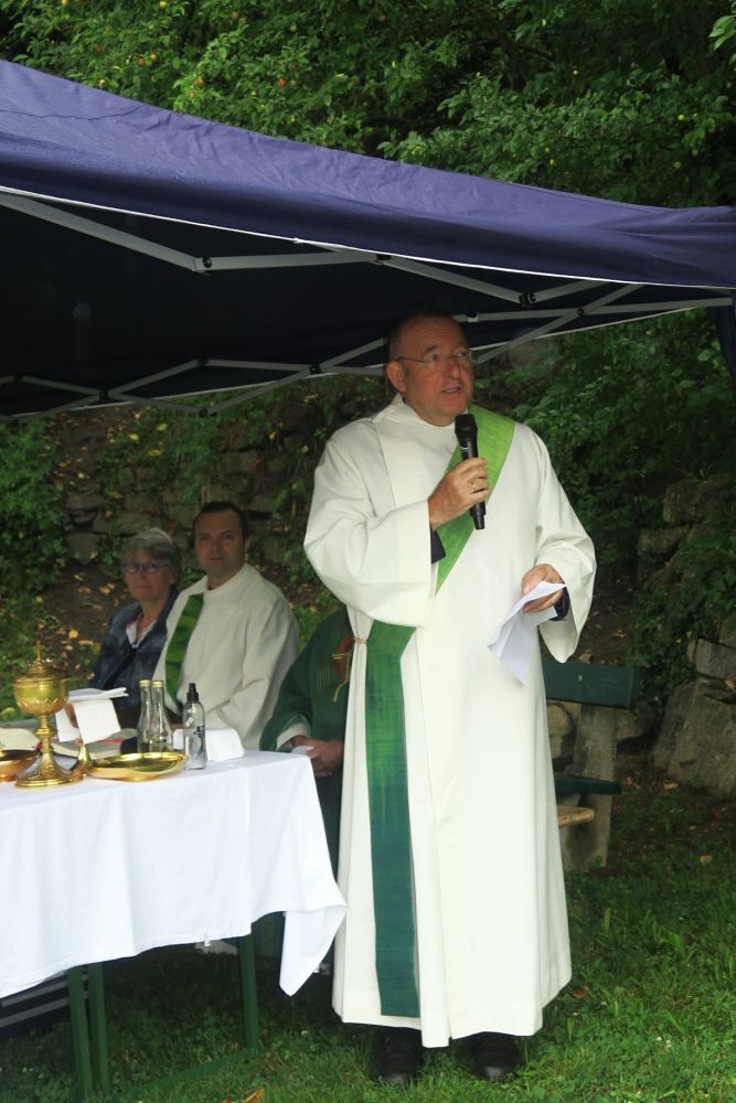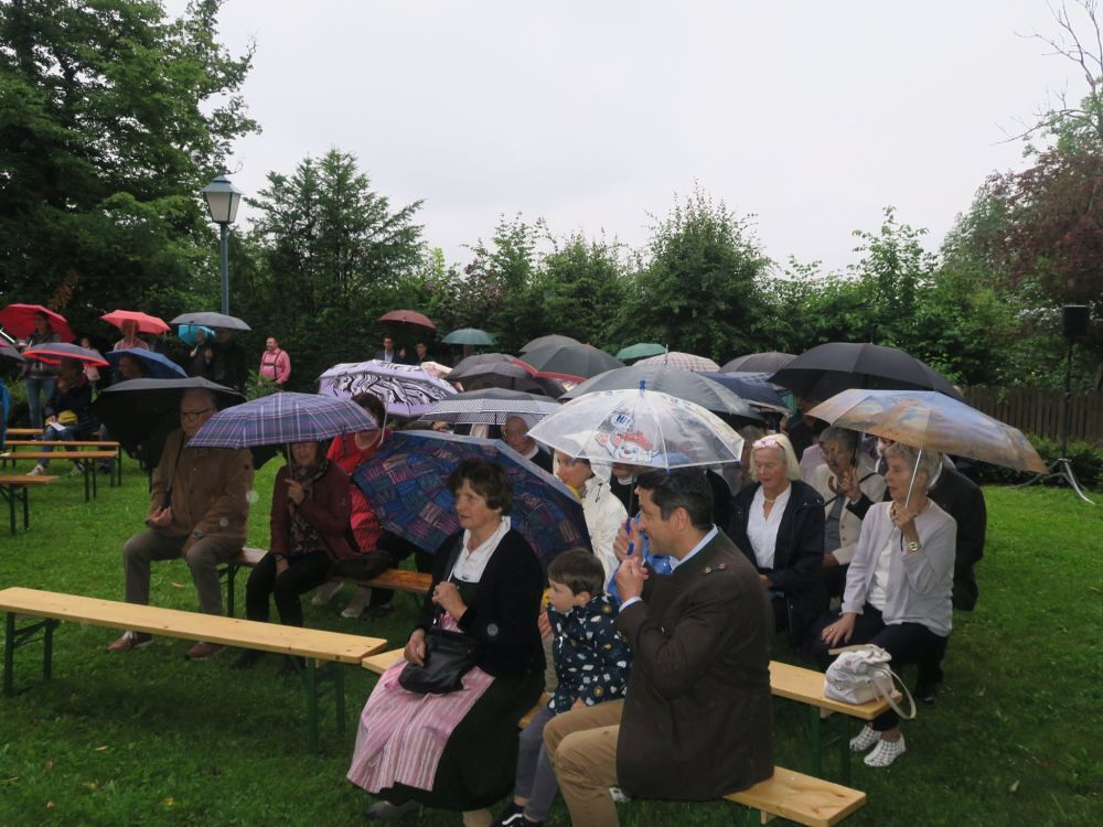 In Anspielung auf den Regen leitete P. Christoph den Schlusssegen mit den Worten ein, dass in Afrika, wo er mehr als 20 Jahre gewirkt habe, der Regen ein Zeichen für Gottes Segen sei.