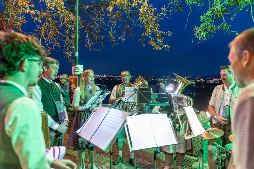 Zum wiederholten Mal luden der Musikverein und die Pfarrgemeinde St.Magdalena sehr herzlich ein zum Weinfest. Beginn war jeweils um 17:00 Uhr. Zu genießen gab es erlesene Weine und selbst zubereitete Speisen, und das bei bestem Wetter hoch über den Dächern von Linz.