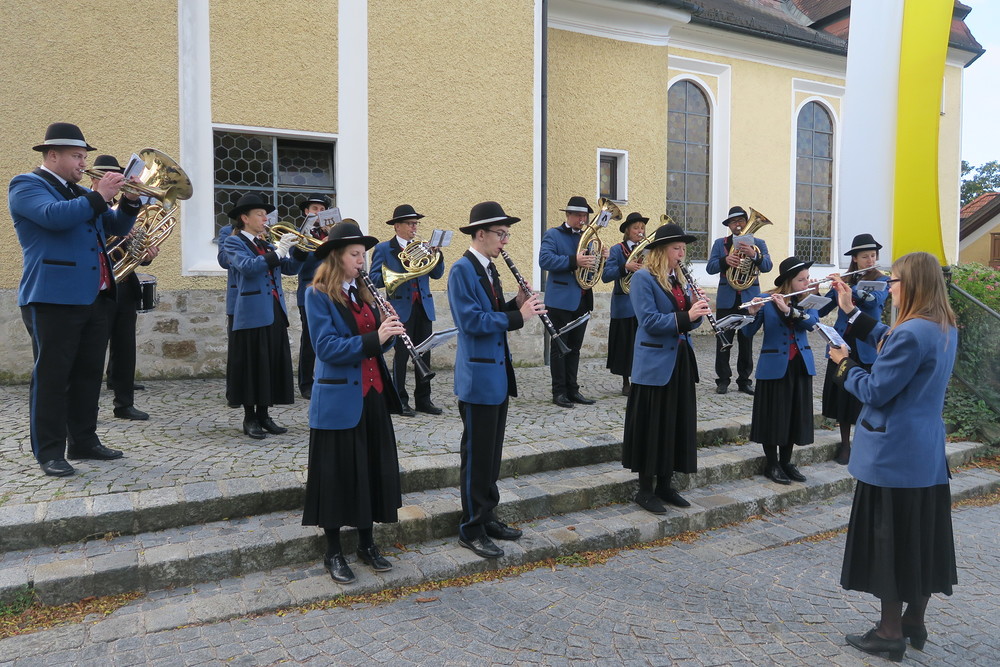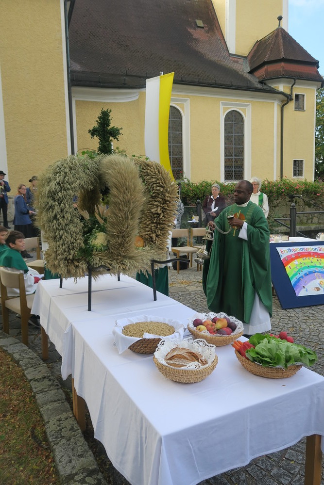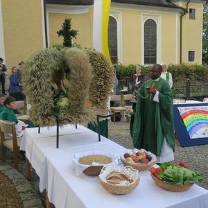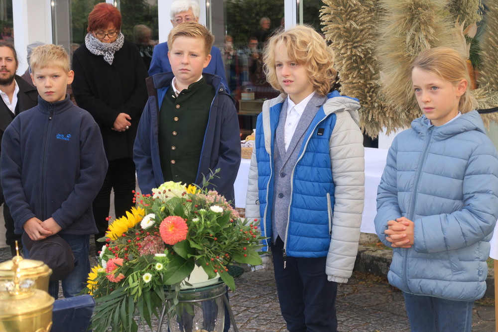 Um 9.15 Uhr fand die Segnung der Erntegaben und anschließend der Festgottesdienst auf dem Dorfplatz statt.