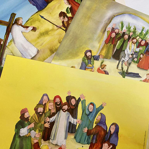 Erkunde die Geschichte der Karwoche und von Ostern mit Bildern in der Kirche und hilf mit, Weizen zum Wachsen zu bringen!