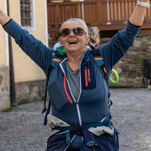 Doris jubelt beim Zieleinmarsch und zückt dann gleich ihr Handy zum Scannen des QR-Codes – es soll ja eine gute Zeit in der Ergebnisliste stehen. Für Alex ist selbst der strömende Regen kein Grund, die tägliche Runde zu laufen, und Michael ist noch etwas ambitionierter – erst bei Runde 20 ist für ihn Schluss.
