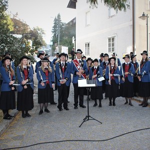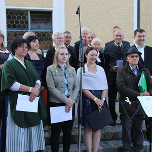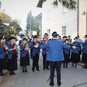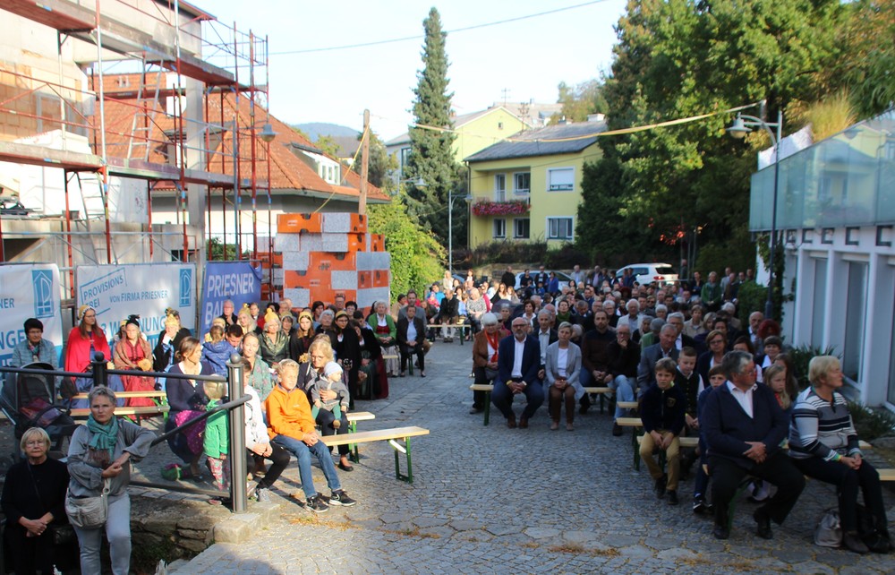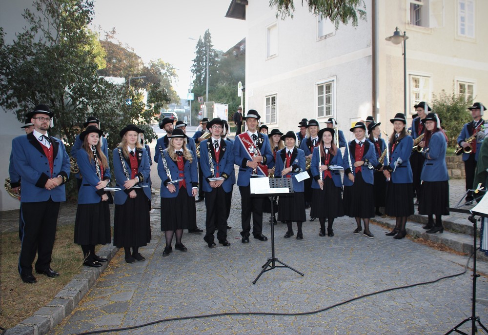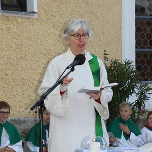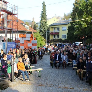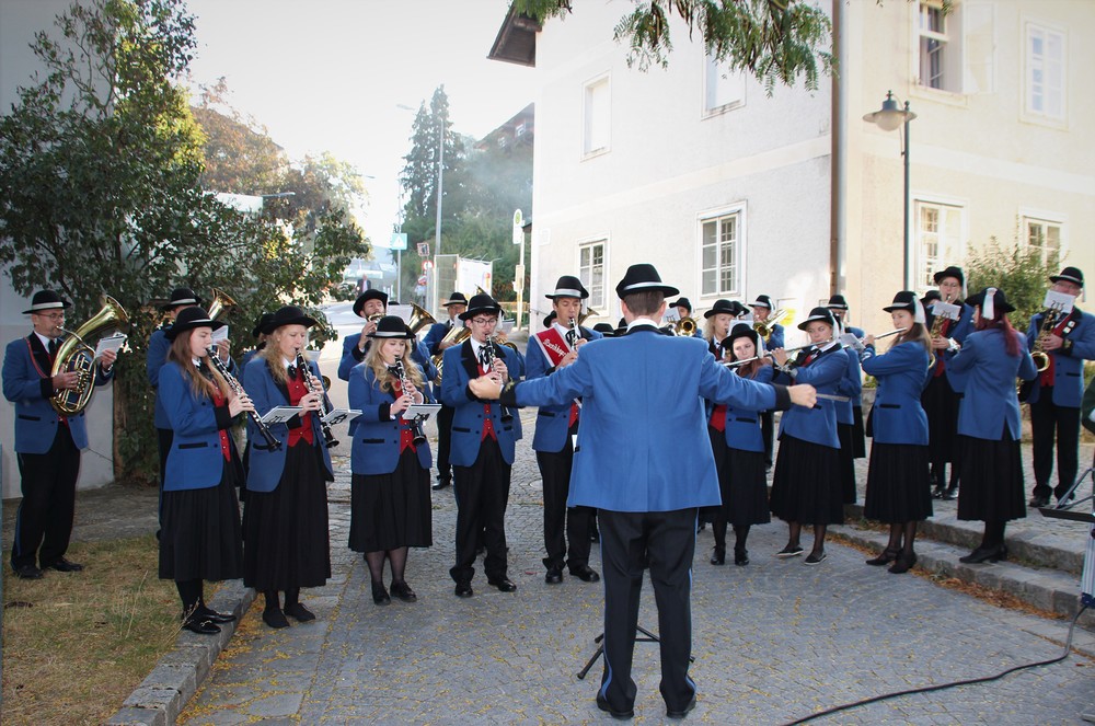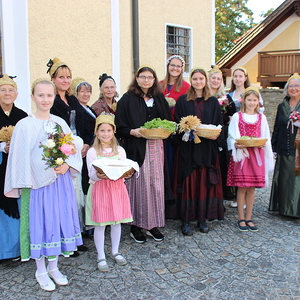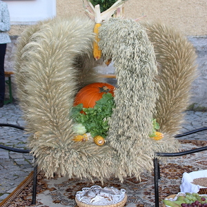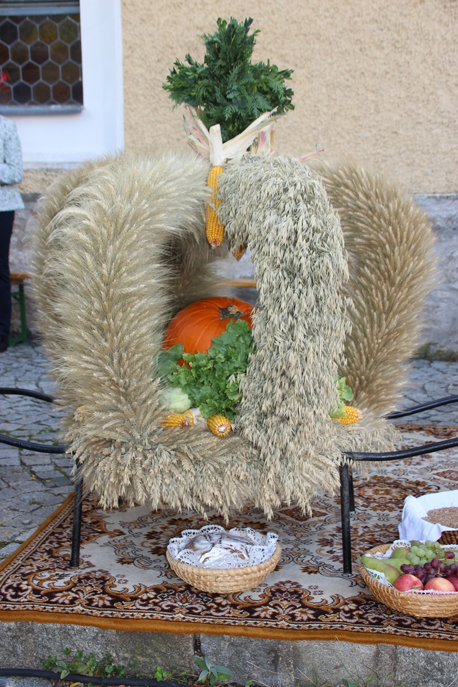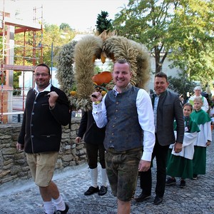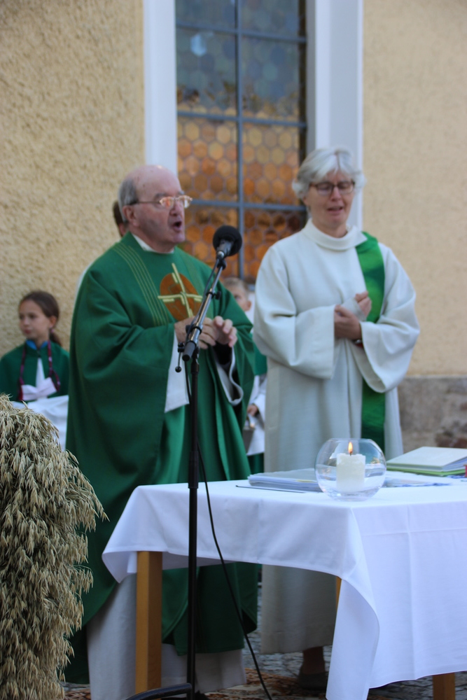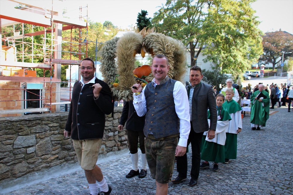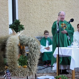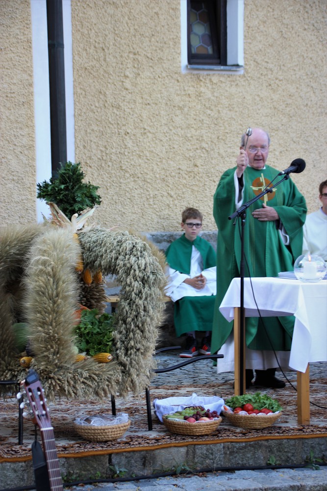 Bei strahlendem Sonnenschein fand um 9.15 Uhr die Segnung der Erntegaben und der Festgottesdienst am Ortsplatz statt.