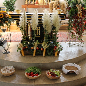 Ein Danke allen Mitwirkenden und Mitfeiernden sowie für zahlreiche Kuchenspenden und das Erntedankopfer.