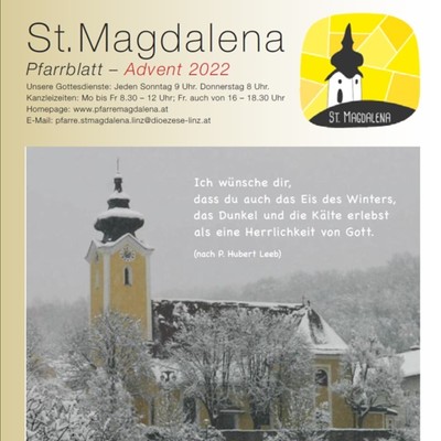 Abonnieren Sie den Newsletter der Pfarrgemeinde Urfahr-St. Magdalena. Wir informieren Sie über Aktivitäten unserer Gemeinde und bieten Impulse für den Glauben im Alltag. Er erscheint vier Mal im Jahr gemeinsam mit dem Terminblatt.