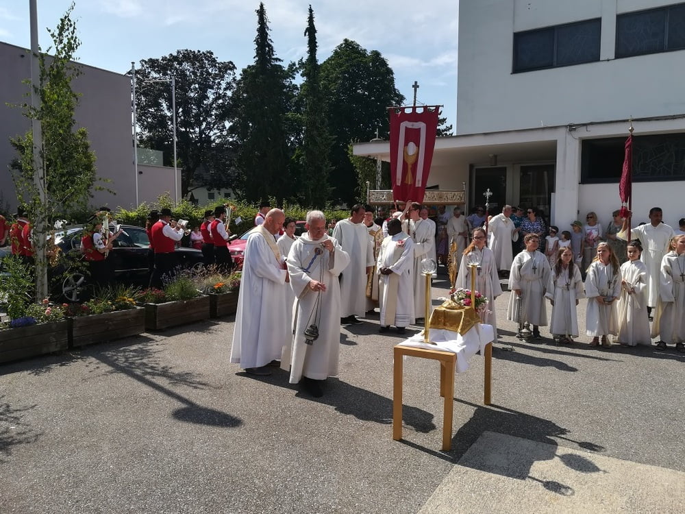 Es begann mit einer Eucharistiefeier am Bellevue Park. Anschließend zog die Prozession entlang der Glimpfingerstraße, über die Spallerhofstraße in die Wallenbergstraße zur Kirche St. Peter. Den feierlichen Abschluss bildete der Segen in alle Himmelsrichtungen am Kirchenplatz.